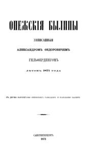Онежские былины, записанные Александром Федоровичем Гильфердингом летом 1871 года