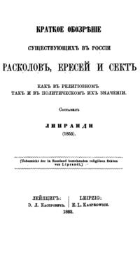 Краткое обозрѣнiе существующихъ въ Россiи расколовъ, ересей и сектъ какъ въ религiозномъ, такъ и въ политическомъ ихъ значенiи