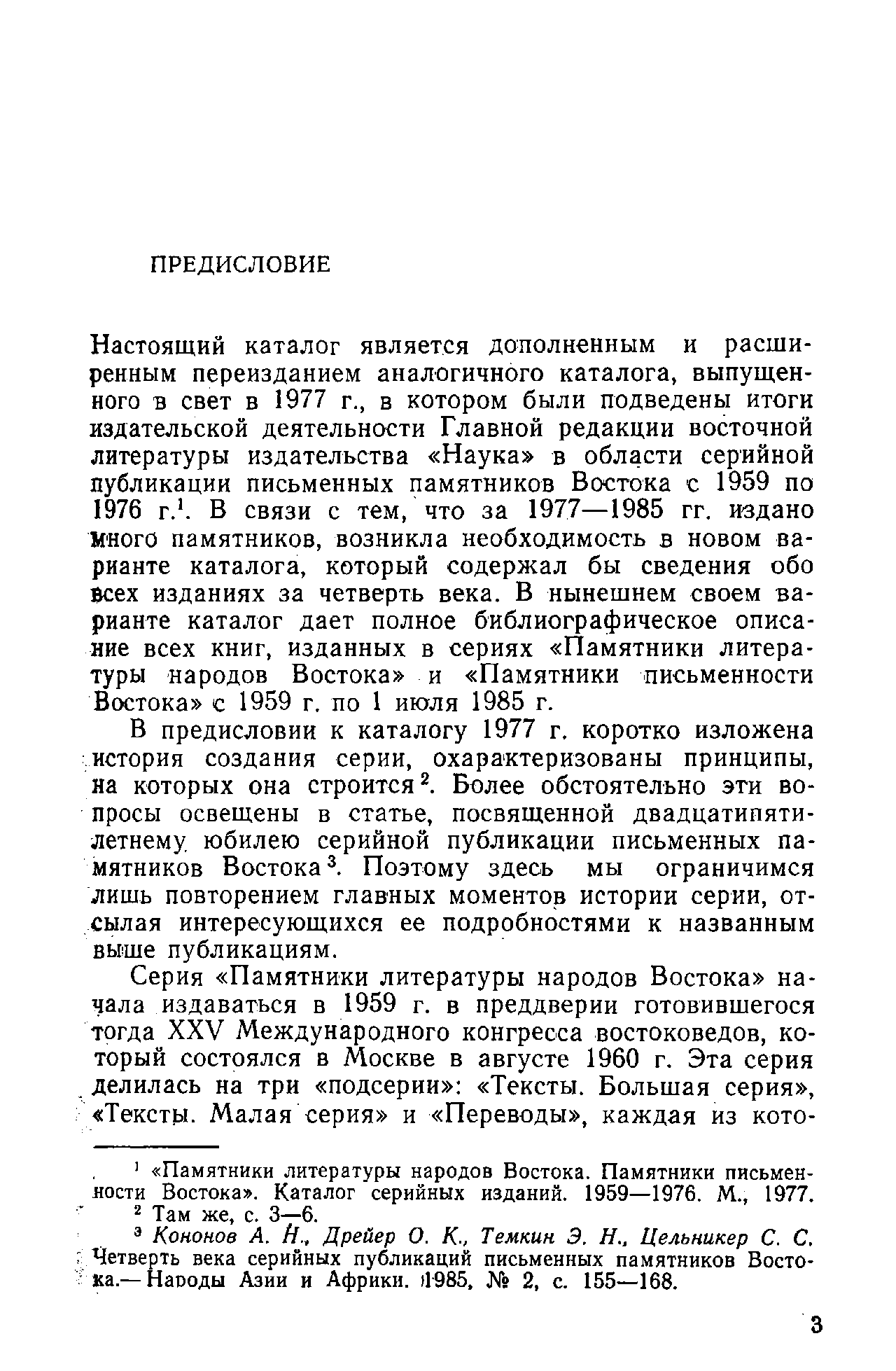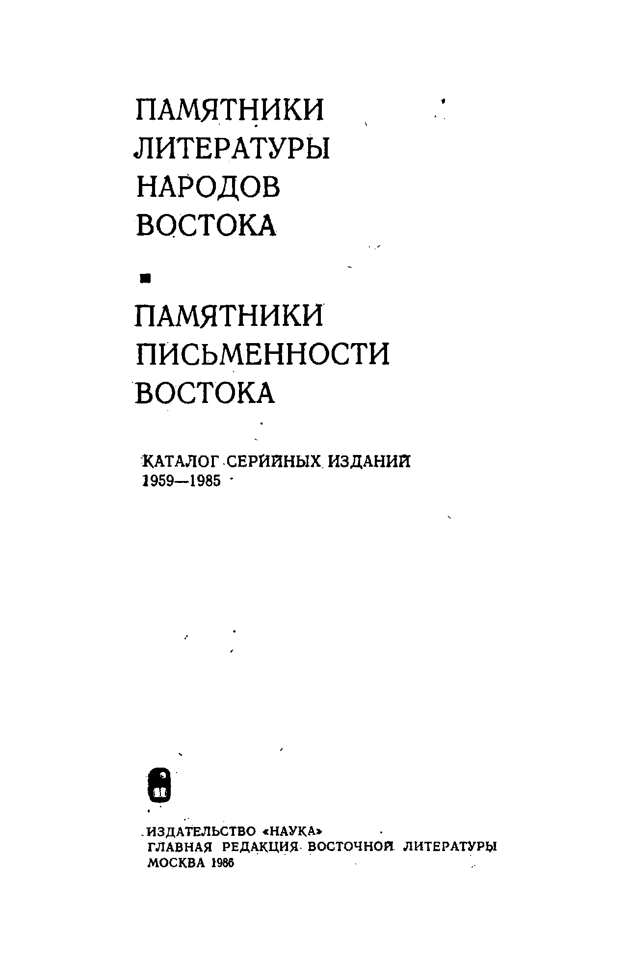 Настоящий каталог является дополненным и расширенным переизданием аналогичного каталога, выпущенного в свет в 1977 г., в котором были подведены итоги издательской деятельности Главной редакции восточной литературы издательства "Наука" в области серийной публикации письменных памятников Востока с 1959 по 1976 г. В связи с тем, что за 1977-1985 гг. издано много памятников, возникла необходимость в новом варианте каталога, который содержал бы сведения обо всех изданиях за четверть века. В нынешнем своем варианте каталог дает полное библиографическое описание всех книг, изданных в сериях "Памятники литературы народов Востока" и "Памятники письменности Востока" с 1959 г. по 1 июля 1985 г.