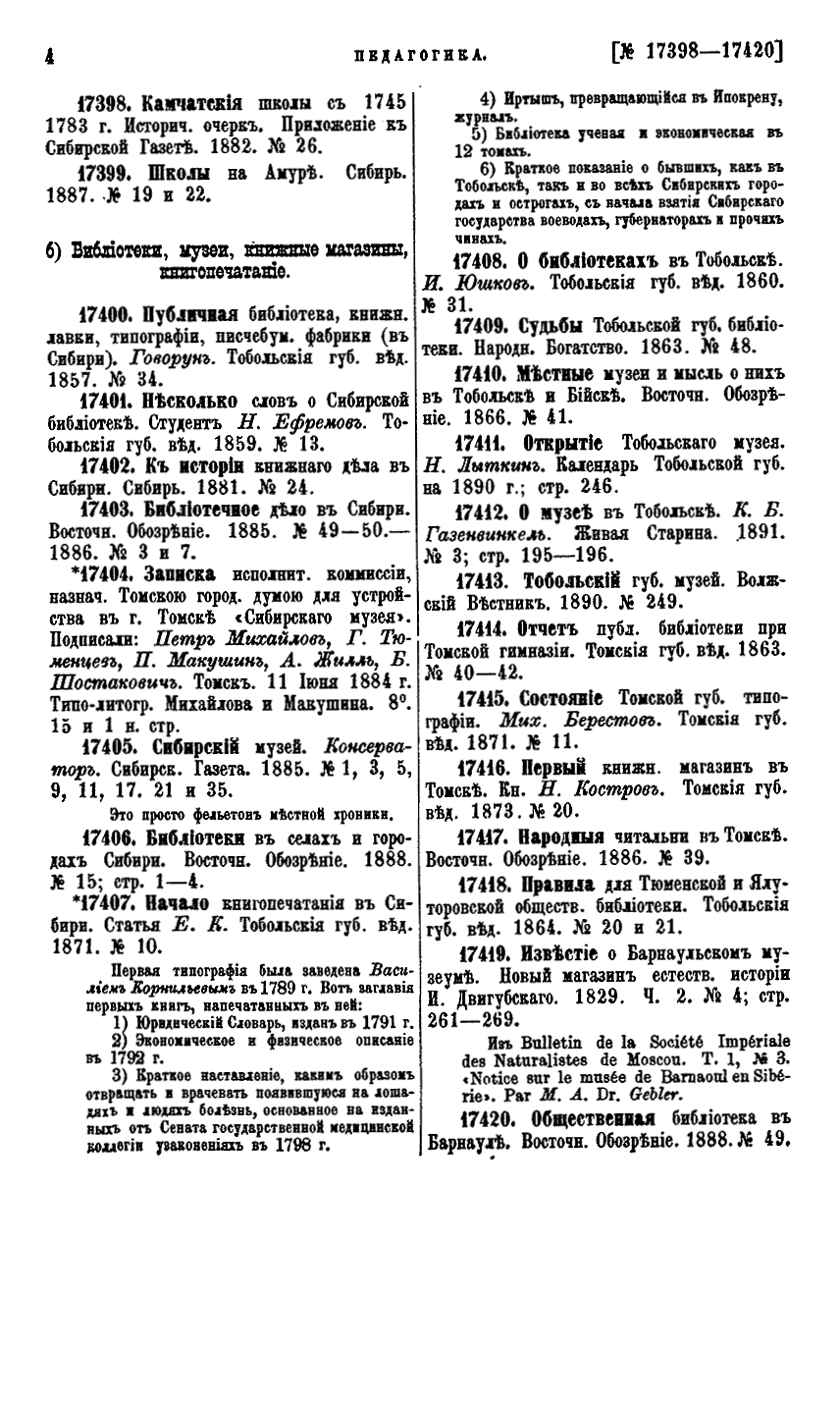 Сибирская библiографiя. Указатель книгъ и статей о Сибири на русскомъ языкѣ и однѣх только книгъ на иностранныхъ языкахъ за весь перiодъ книгопечатанiя