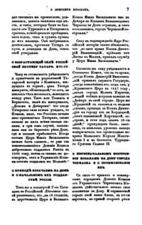 «Я сие описание составил не для поношения сего народа, но единственно для соображения всех настоящих дел их...Хотя и были из оных между тем изверги и развратные люди, и что они из разного народа общество свое составили и были иногда неспокойны, оное войску их не делает пороку, потому что и в прочем народе, а паче при начале такого собрания своего были такие ж буйственники и удальцы противу соседей и земляков своих, но потом так же состоятельными людьми стали быть, как и сии»