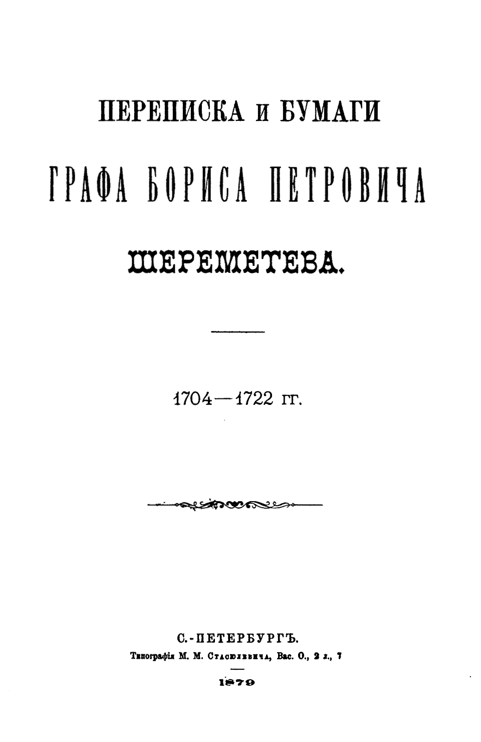 Переписка и бумаги графа Бориса Петровича Шереметева, 1704-1722 гг.