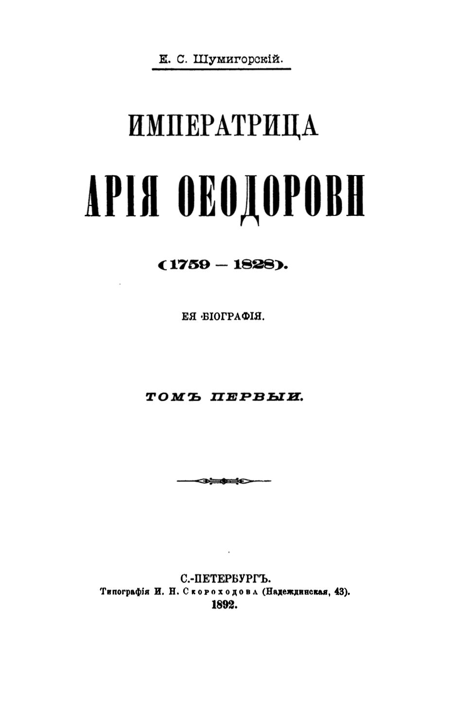 Императрица Мария Ѳедоровна (1759–1823). Ея бiографiя. Томъ первый