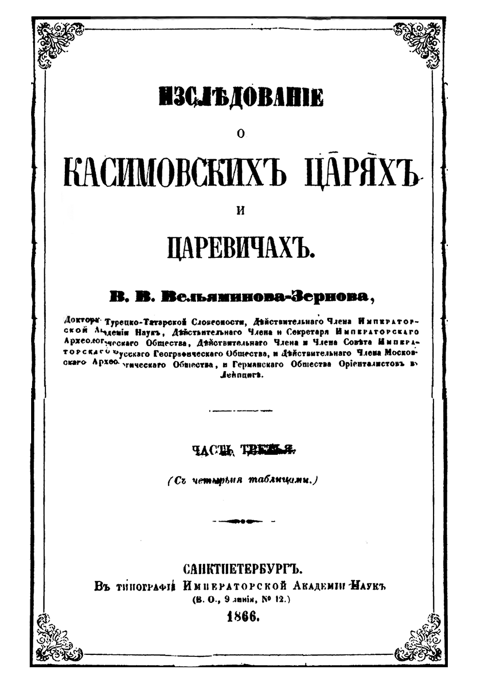Изследованiе о касимовскихъ царяхъ и царевичахъ. Часть третья