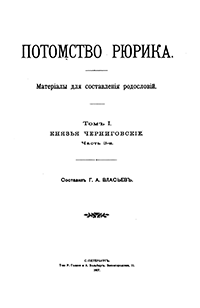 Потомство Рюрика. Материалы для составления родословий. Том I. Князья Черниговские. Часть 3-я