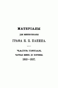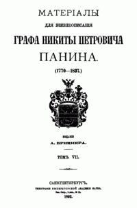 Матерiалы для жизнеописанiя графа Никиты Петровича Панина