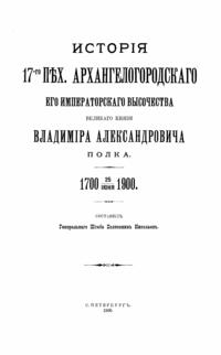 Исторiя 17-го пѣхотнаго Архангелогородскаго Его Императорскаго Высочества Великаго Князя Владимiра Александровича полка