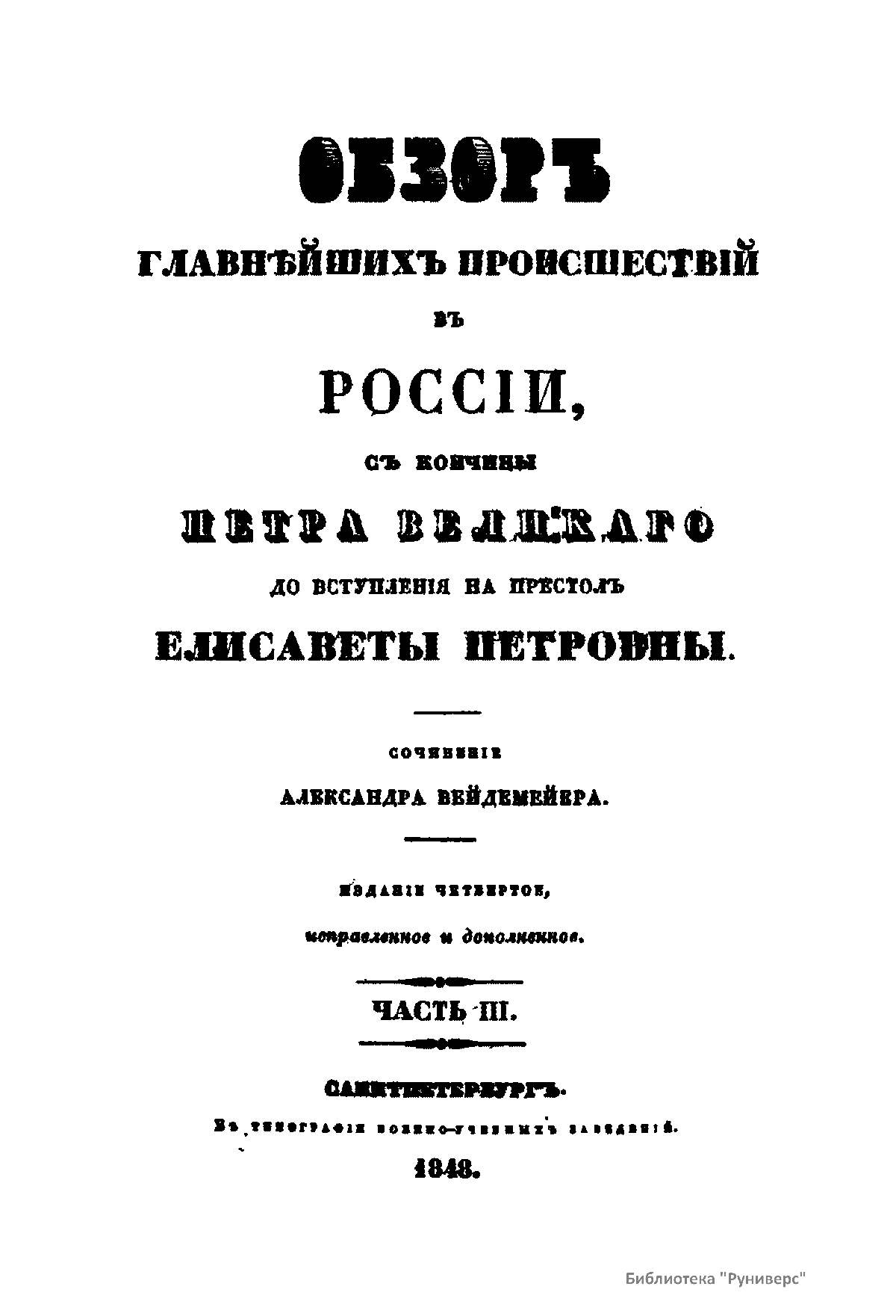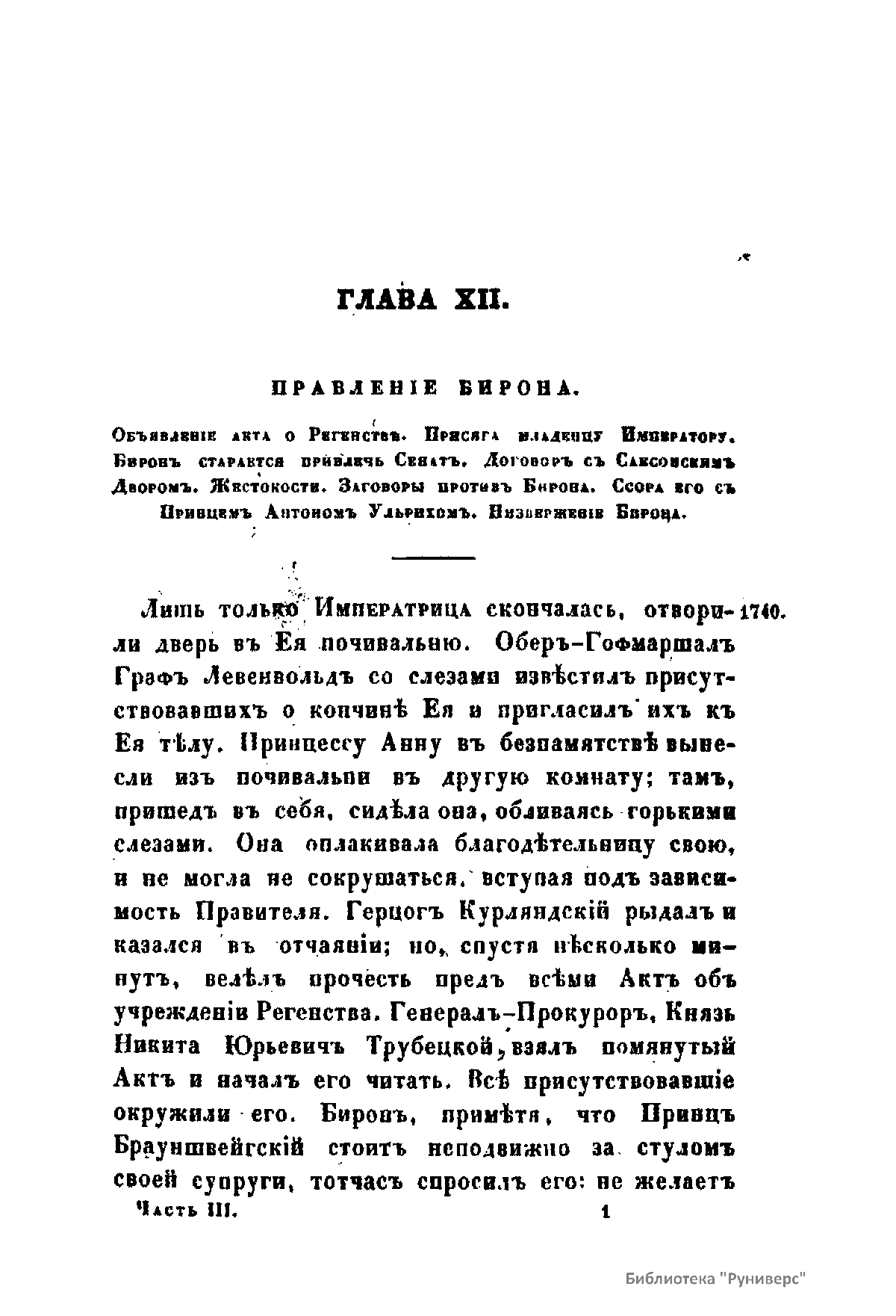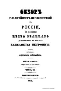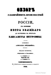 Обзоръ главнѣйшихъ происшествий въ Россiи, съ кончины Петра Великаго до вступленiя на престолъ Елисаветы Петровны. Часть III