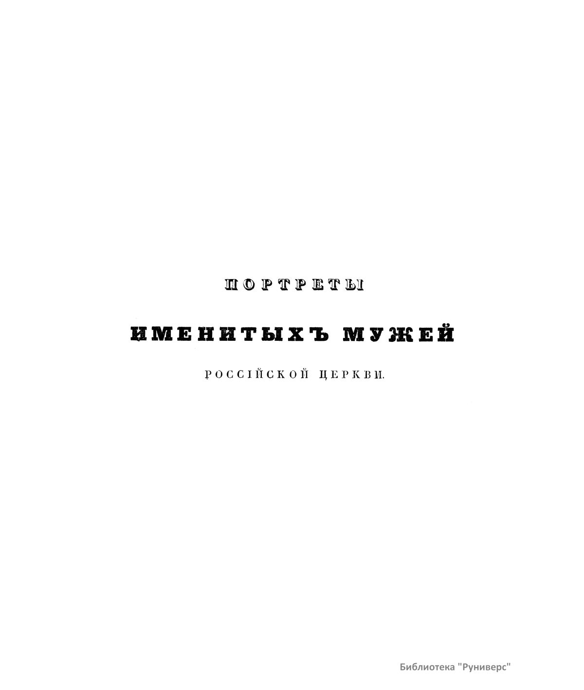 Портреты именитыхъ мужей россiйской церкви, съ приложенiемъ ихъ краткаго жизнеописанiя