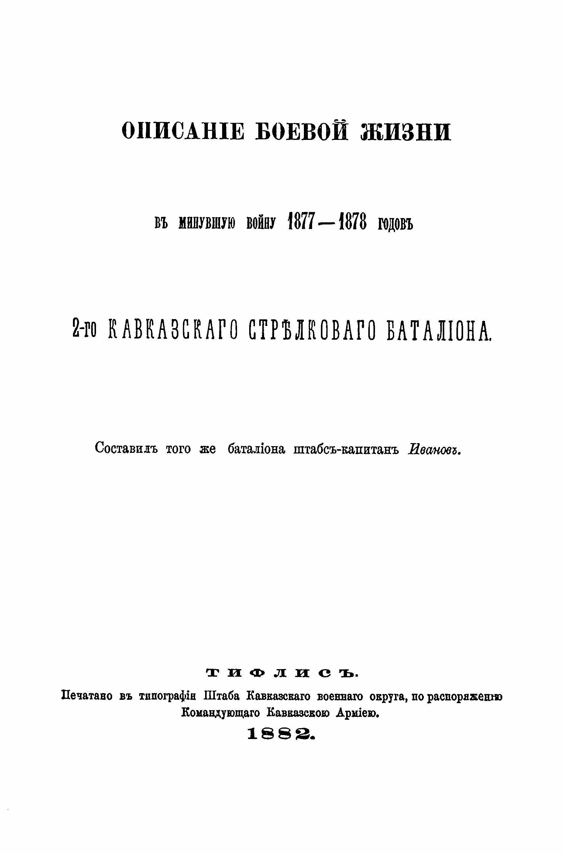 Описанiе боевой жизни въ минувшую войну 1877-1878 годовъ 2-го Кавказскаго стрѣлковаго баталIона