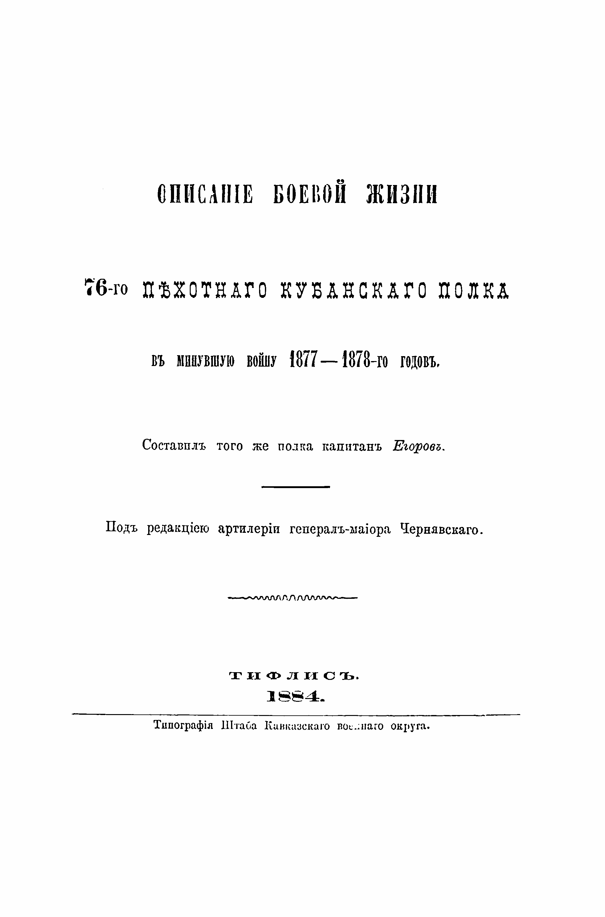 Описанiе боевой жизни 76-го пѣхотнаго Кубанскаго полка въ минувшую войну 1877-1878-го годовъ