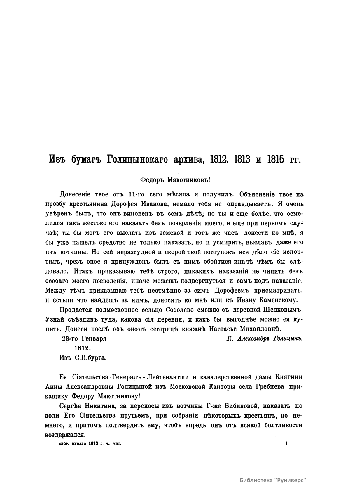 Бумаги относящiяся до отечественной войны 1812 года. Часть восьмая