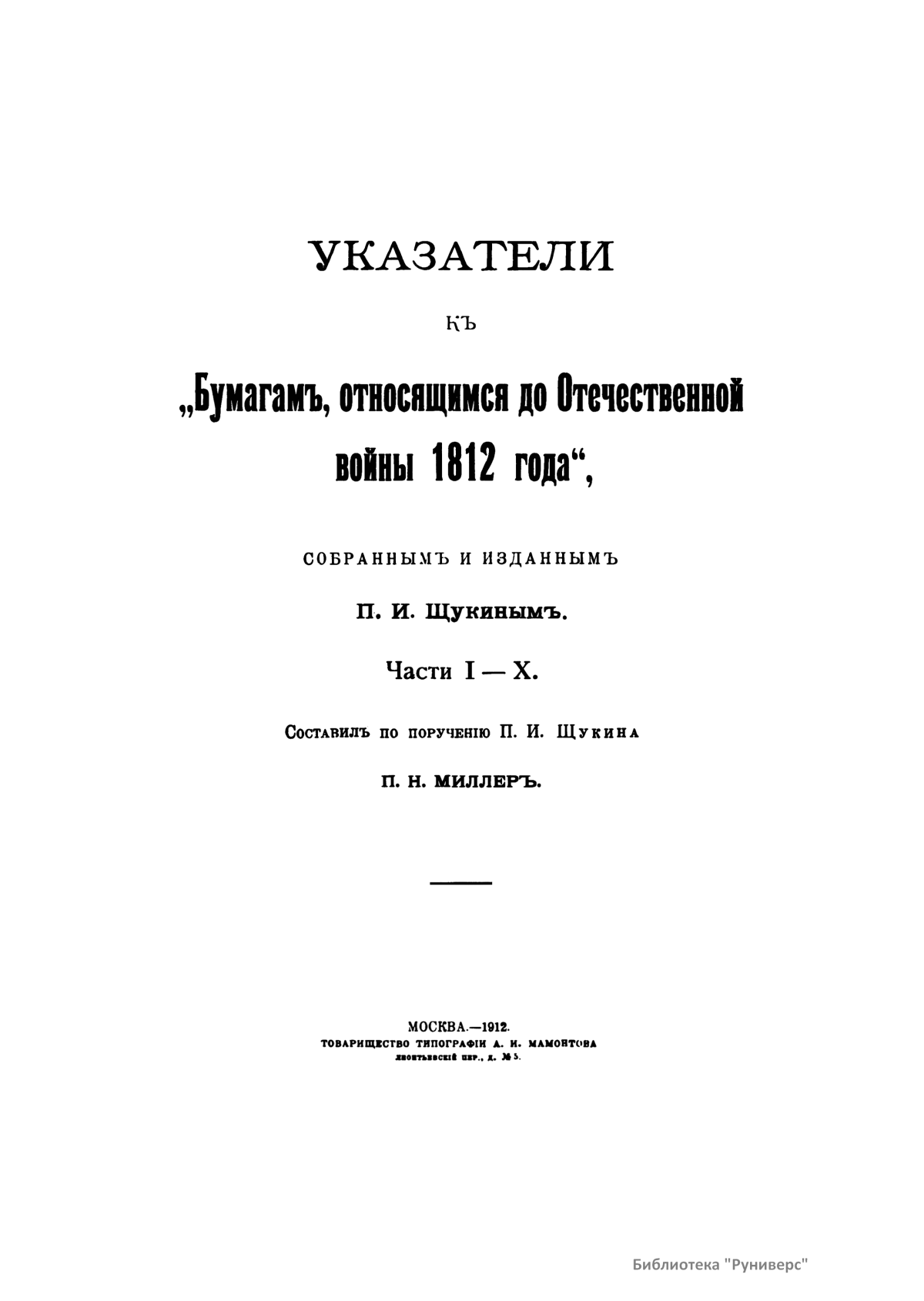 Указатели къ "Бумагамъ, относящимся до Отечественной войны 1812 года"