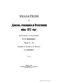 Указатели к "Бумагам, относящимся до Отечественной войны 1812 года"