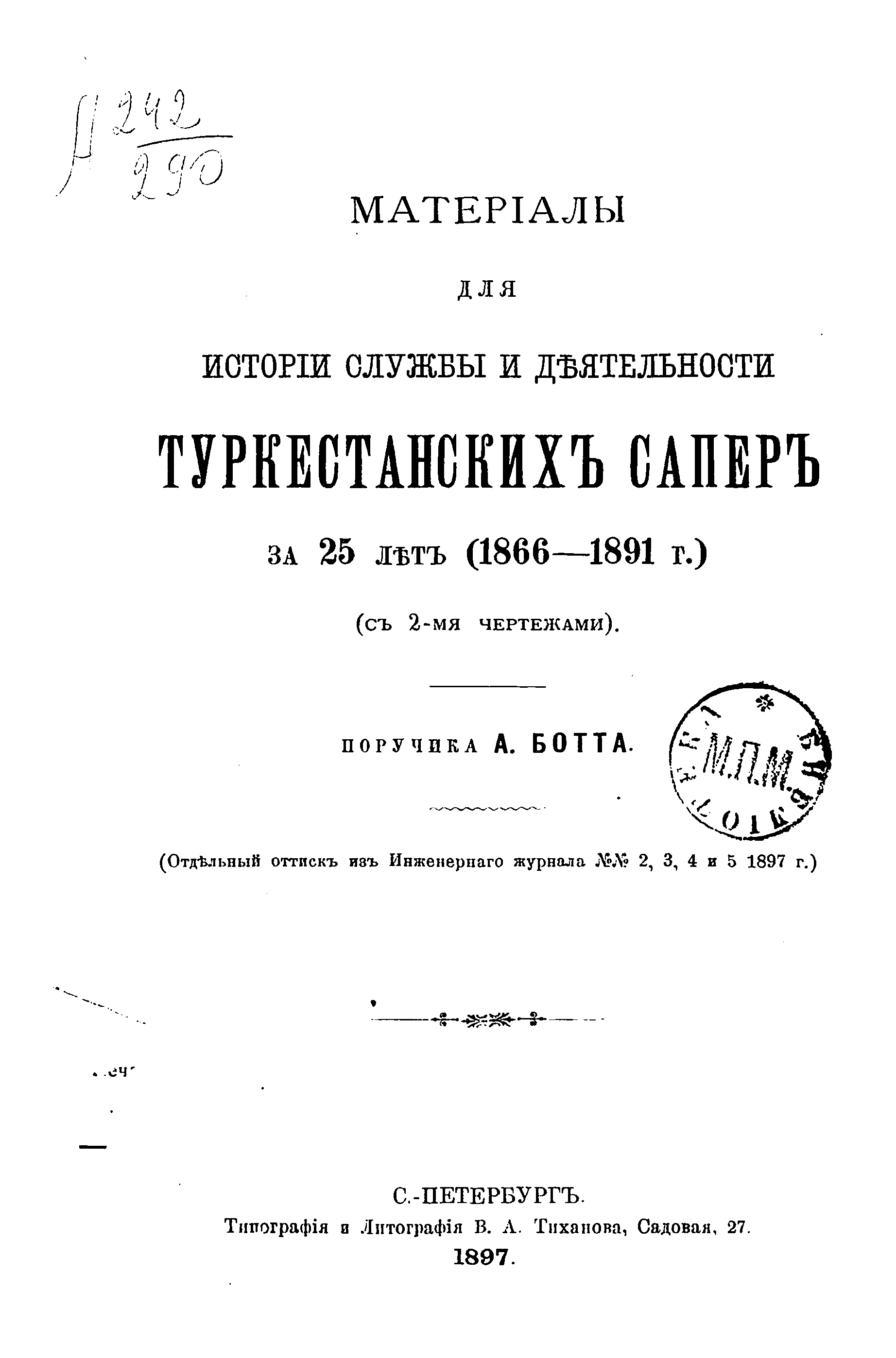 Матерiалы для исторiи службы и дѣятельности Туркестанскихъ саперъ за 25 лѣт (1866-1891г.)