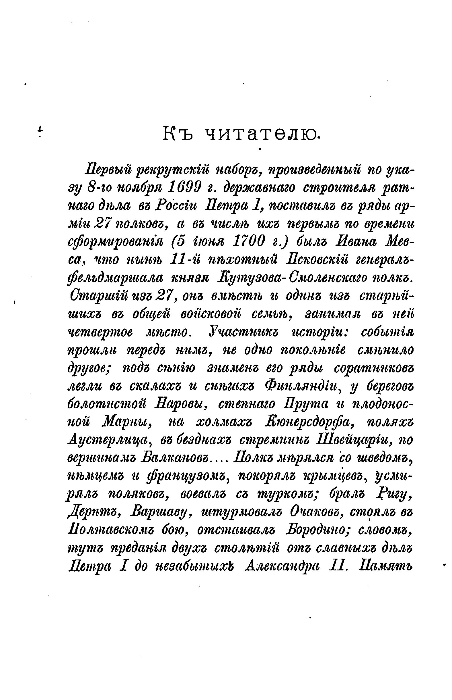 История Псковского пехотного Генерал-Фельдмаршала Князя Кутузова-Смоленского полка. 1700-1881