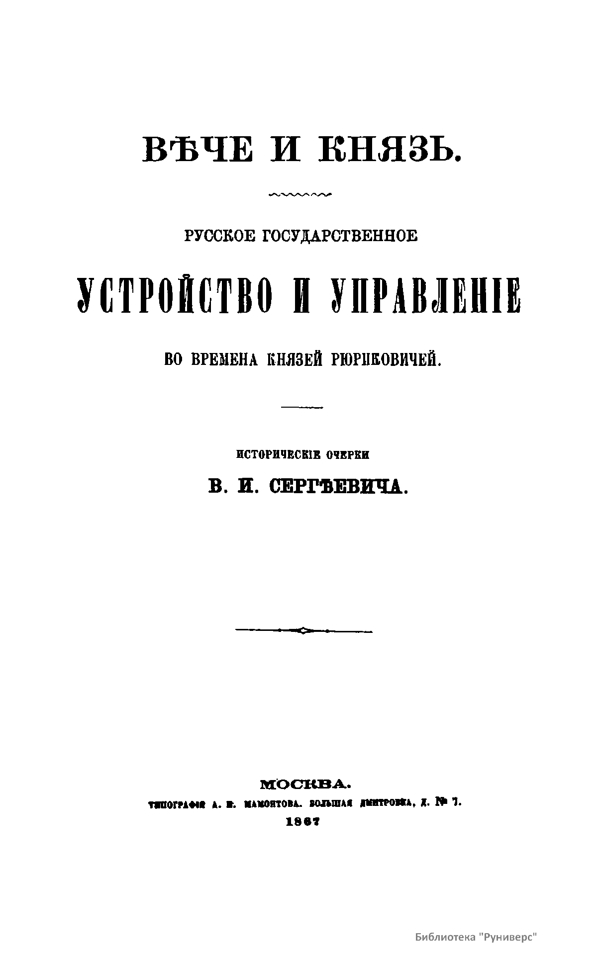 Вечѣ и Князь. Русское государственное устройство и управленiе во времена князей Рюриковичей
