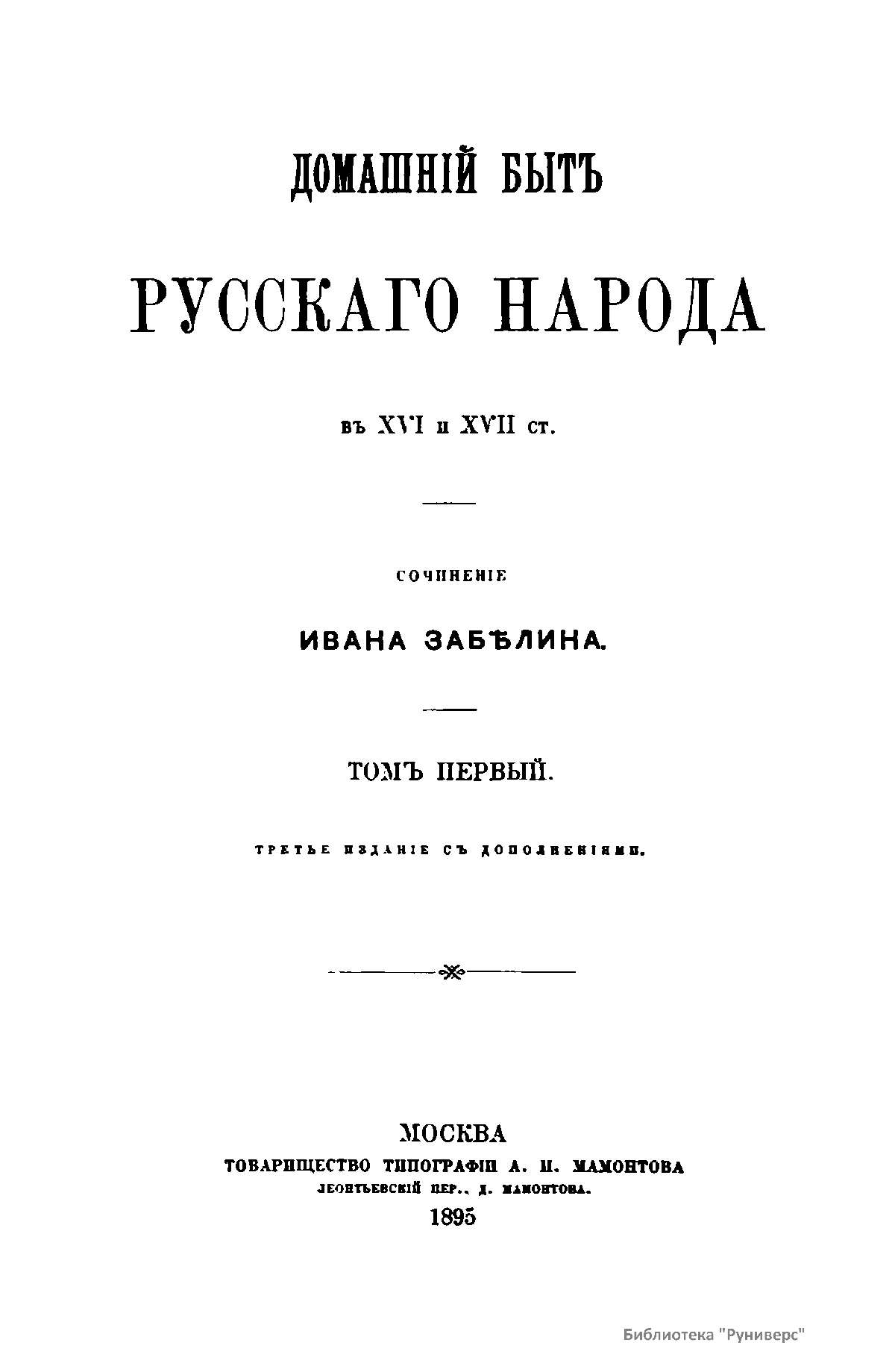 Домашнiй бытъ русскаго народа въ XVI и XVII ст. Томъ первый