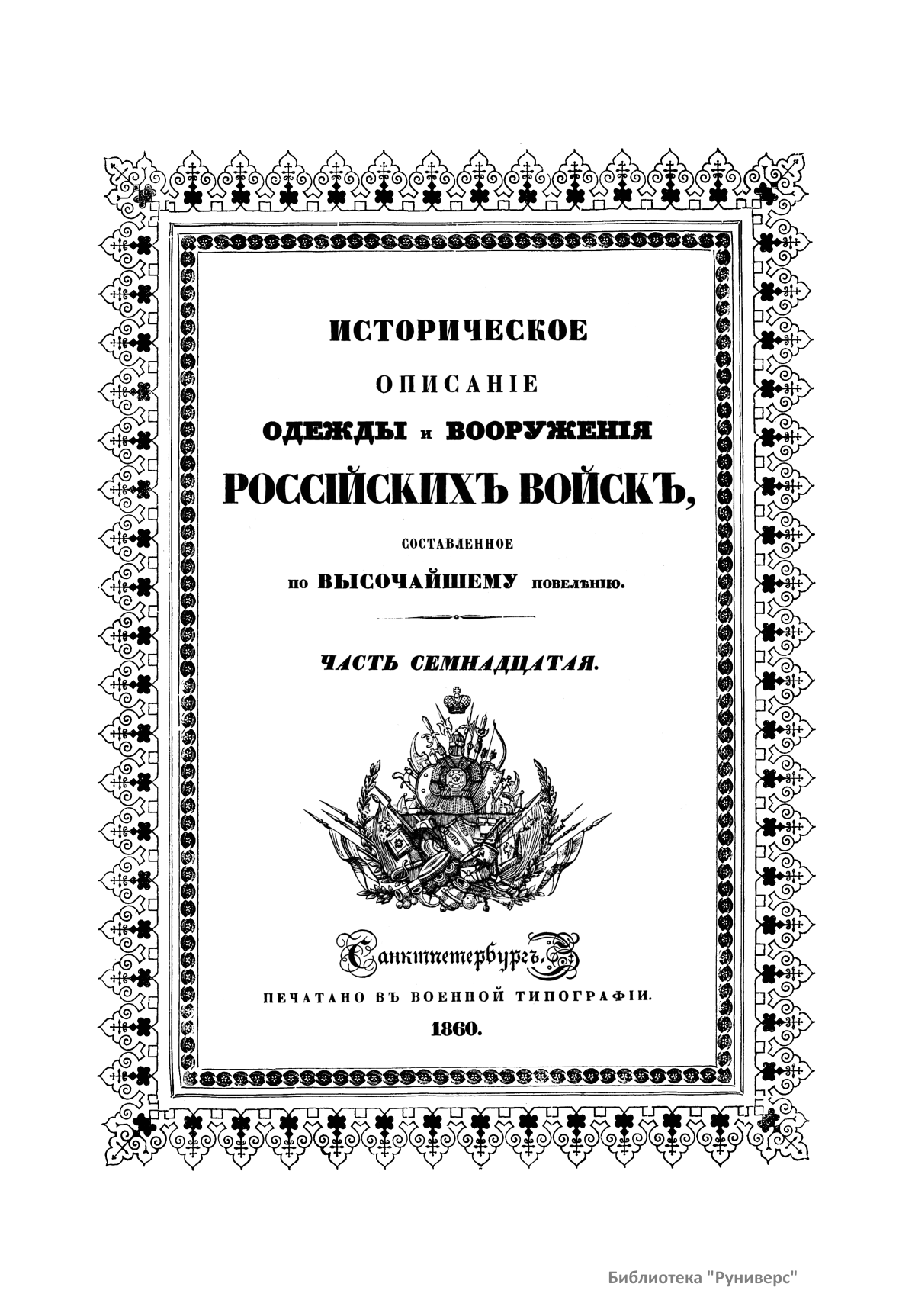 Историческое описание одежды и вооружения Российских войск. Часть семнадцатая