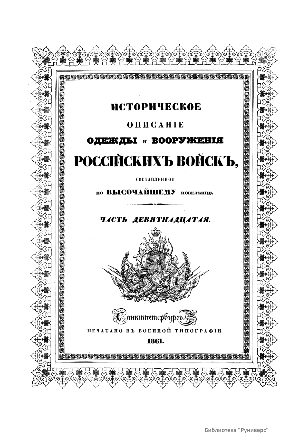 Историческое описание одежды и вооружения Российских войск. Часть девятнадцатая