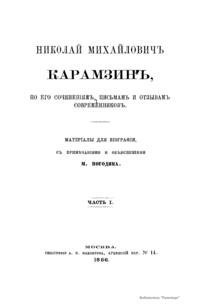 Николай Михайловичъ Карамзинъ, по его сочиненiямъ, письмамъ и отзывамъ современниковъ