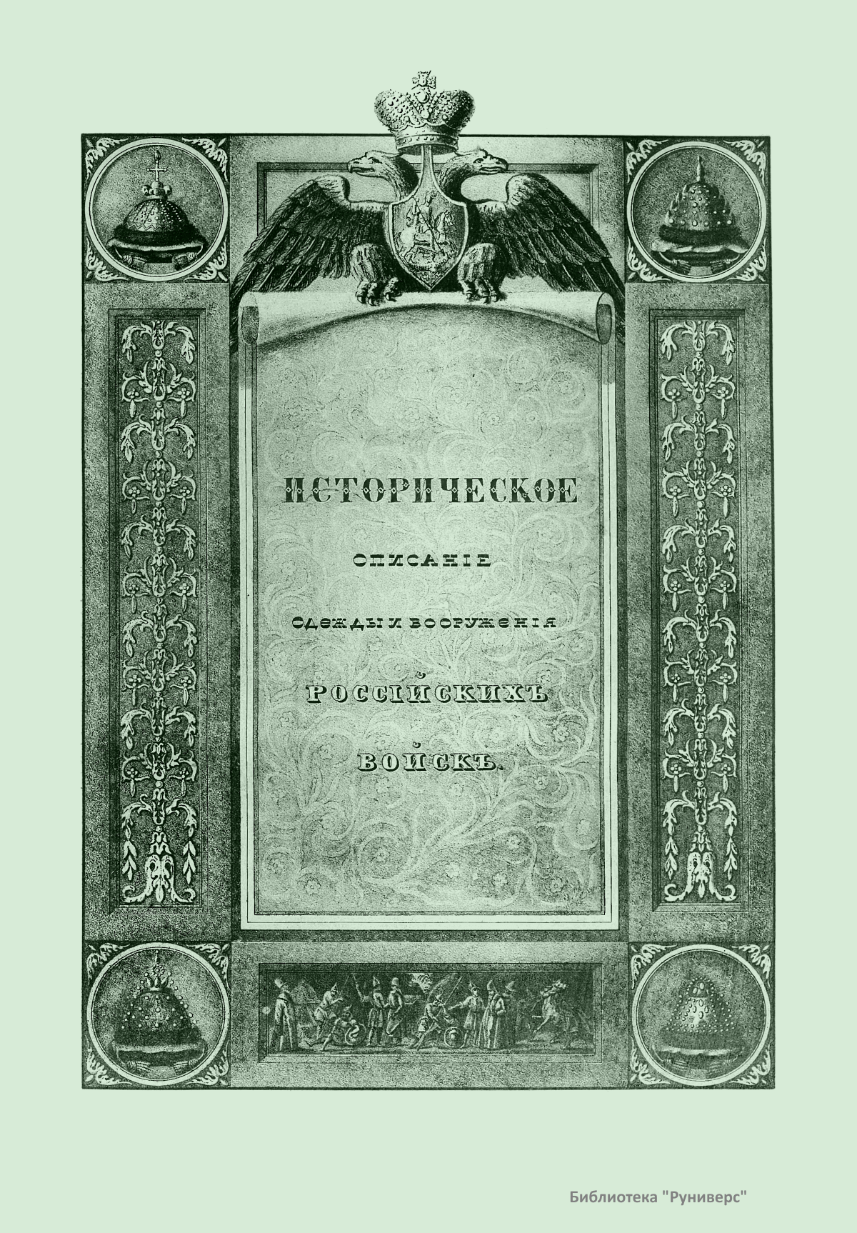 Многотомный труд «Историческое описание одежды и вооружения Российских войск, с рисунками, был составлен по высочайшему повелению» выходил в Санкт-Петербурге в