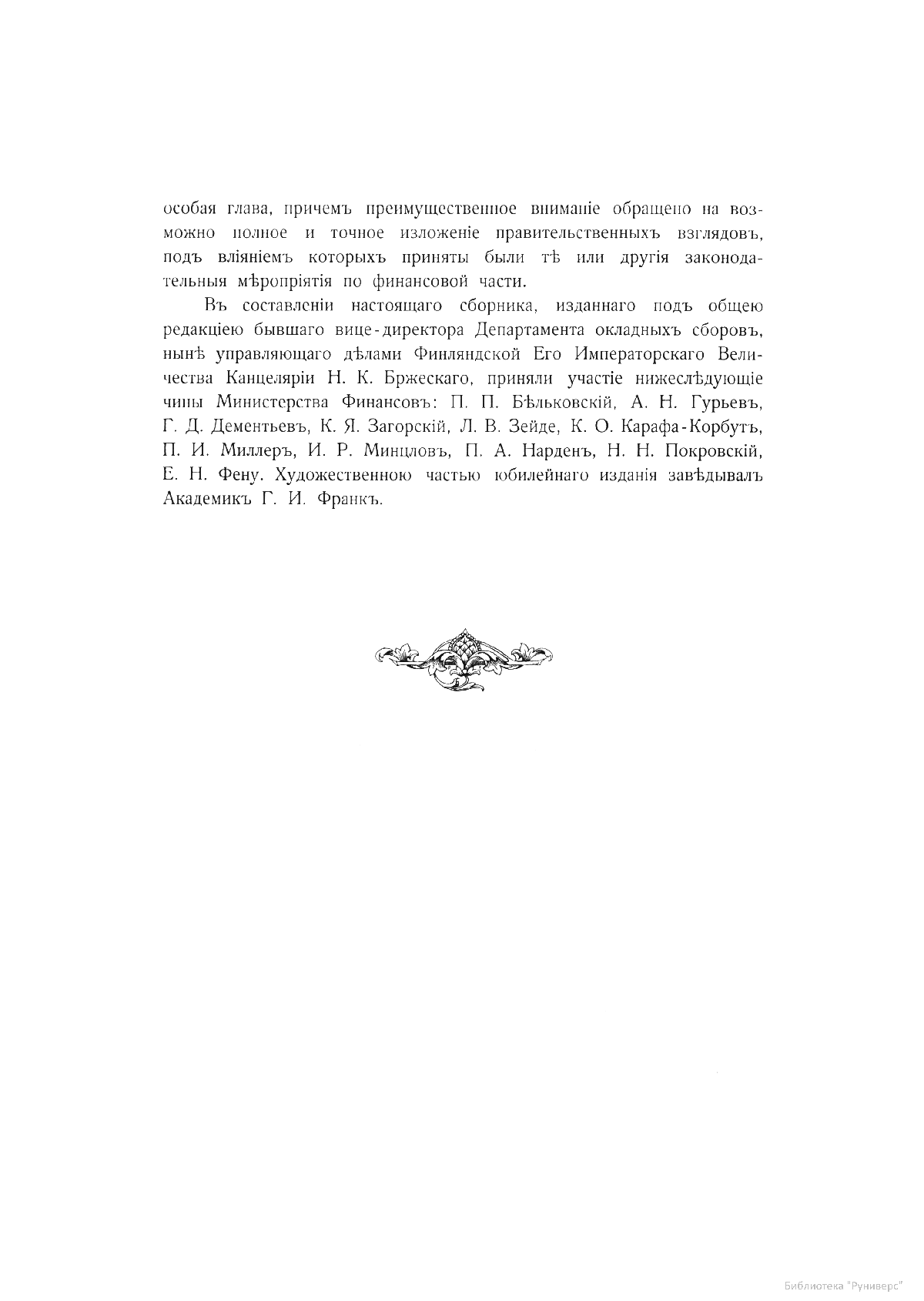 Иллюстрированный исторический сборник был издан к 100-летнему юбилею Министерства финансов по инициативе выдающегося министра финансов России графа С. Ю. Витте. Он посвящен историческому обзору главнейших мероприятий финансового ведомства, жизнеописаниям министров по каждому периоду царствования императоров и содержит уникальный материал, основанный на подлинных документах из архивов. Важнейшим отраслям отведены отдельные главы, освящено развитие финансовых учреждений в XVIII столетии. В подготовке сборника, изданного под общей редакцией вице-директора Департамента окладных сборов Н. К. Бржеского, принимали участие высшие чины Министерства финансов. Художественной частью юбилейного издания заведовал академик Г. И. Франк. Все рисунки в тексте исполнил художник Р. Г. Заррин.