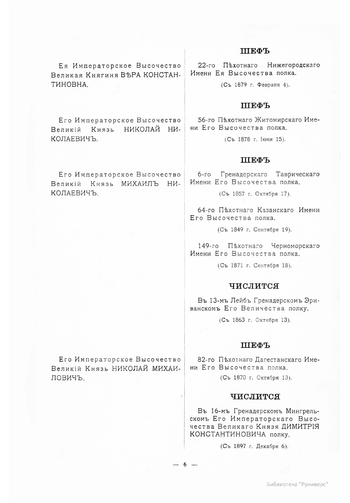 Гренадерскiе и Пѣхотные Полки