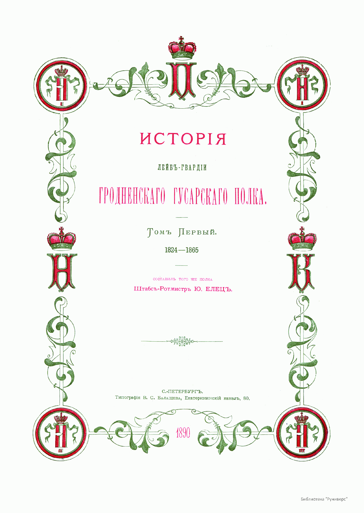 Исторiя Лейбъ-Гвардiи Гродненскаго Гусарскаго полка 1824–1896