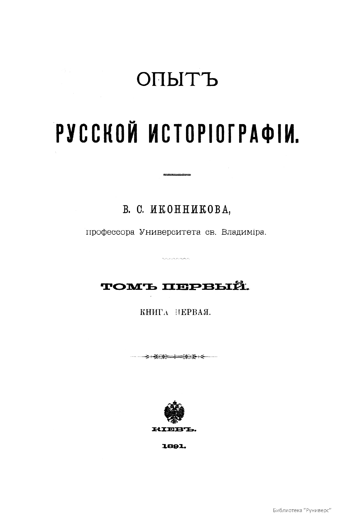 Иконников Владимир Степанович (1841–1923) — историк, академик Петербургской академии наук (1914). Самый капитальный труд В. С. Иконникова — его широко задуманный «Опыт русской историографии» — библиографическое пособие, целая энциклопедия историковедения и библиографии русской истории. Настоящее издание содержит фактический материал по истории летописания.