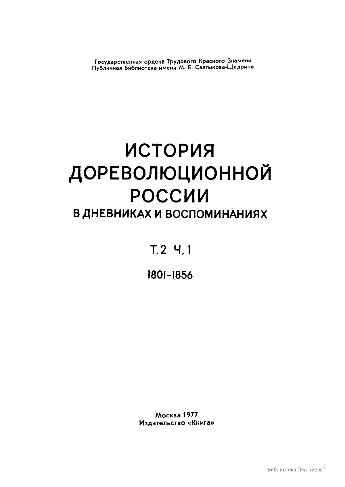 История дореволюционной России в дневниках и воспоминаниях. Т. 2. Ч. 1. 1801-1856