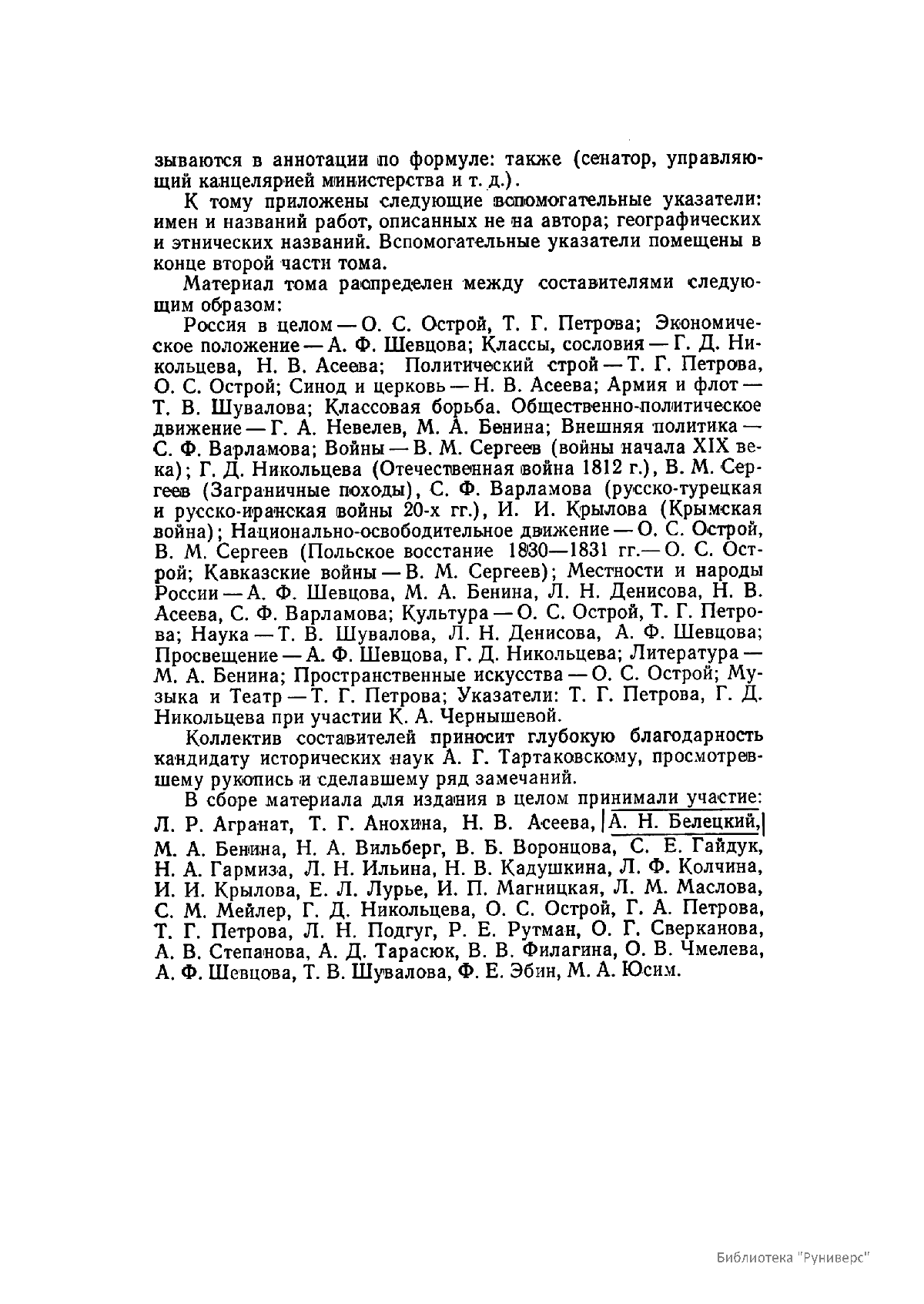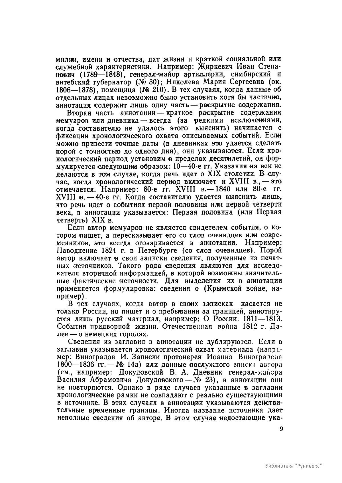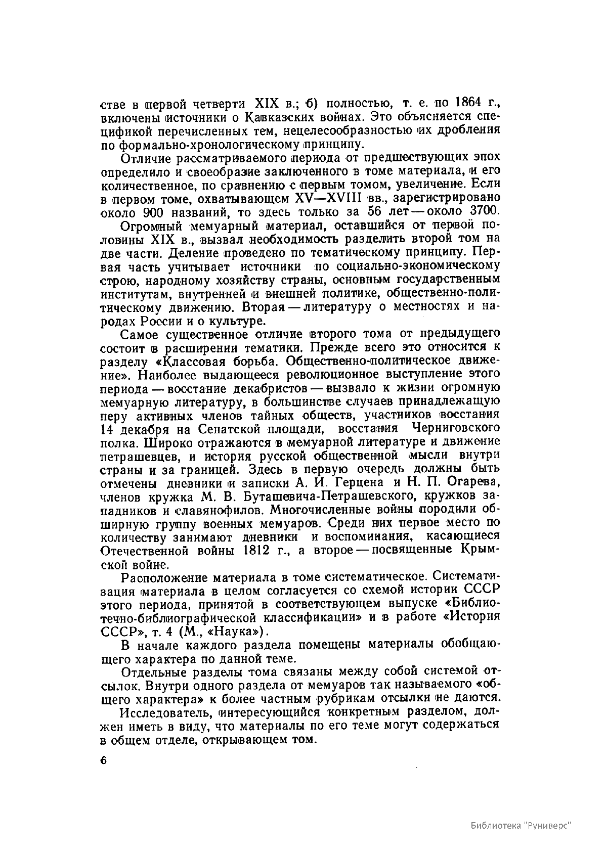 Многотомное издание этого уникального библиографического исследования, ставшего итогом многолетней работы большого коллектива ведущих отечественных источниковедов и библиографов главных библиотек нашей страны, представляет собой крупнейшее собрание аннотированной мемуарной литературы по истории России. Ведущую роль в создании этого фундаментального издания сыграл крупный отечественный ученый-историк П.А. Зайончковский, под редакцией и неусыпным контролем которого разрабатывался и выходил представленный многотомник (последние 5 книг вышли после кончины этого замечательного учёного-энциклопедиста).