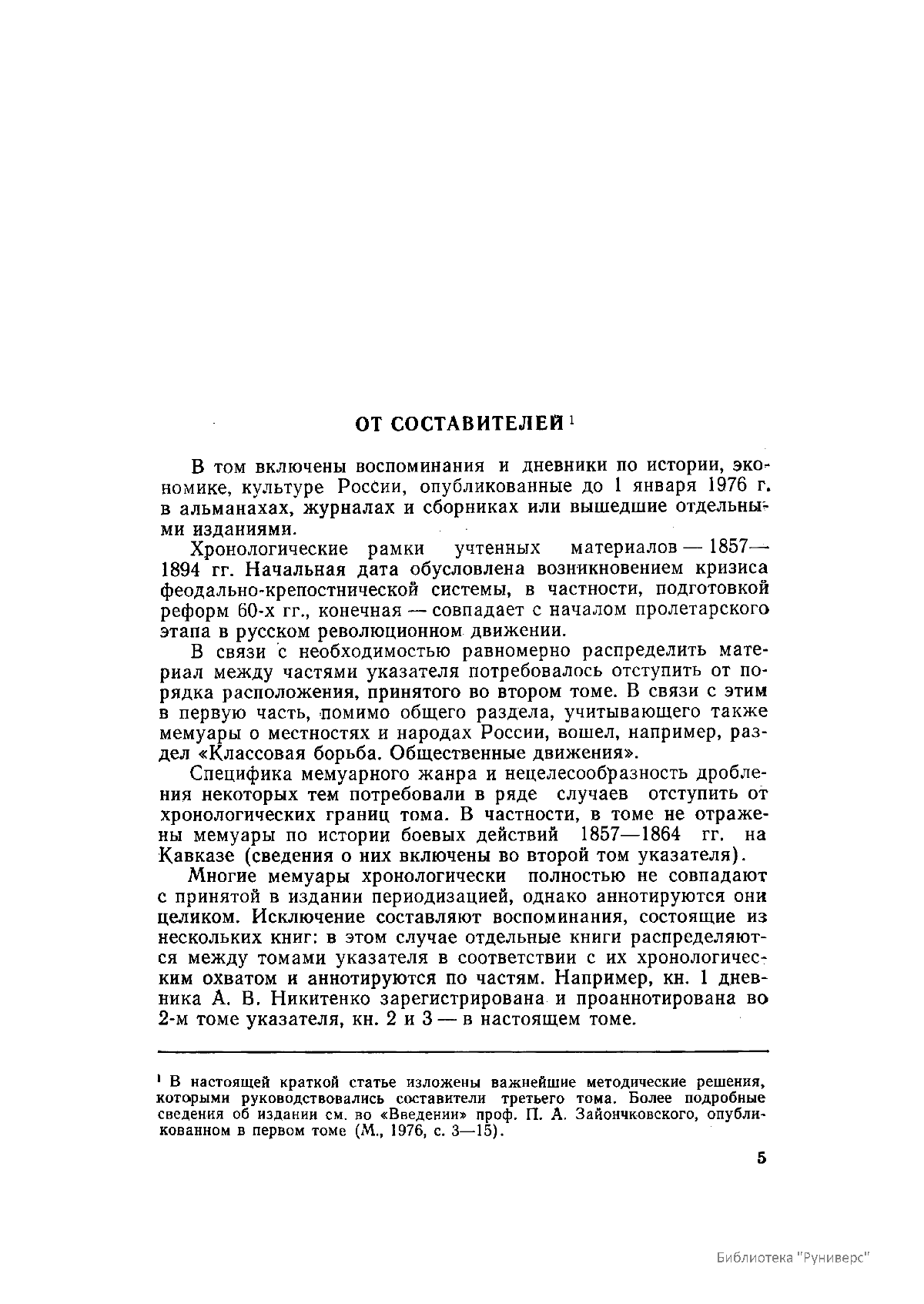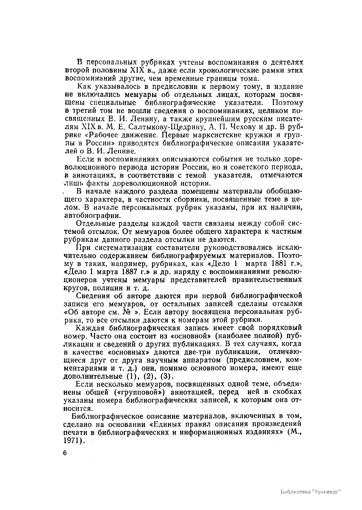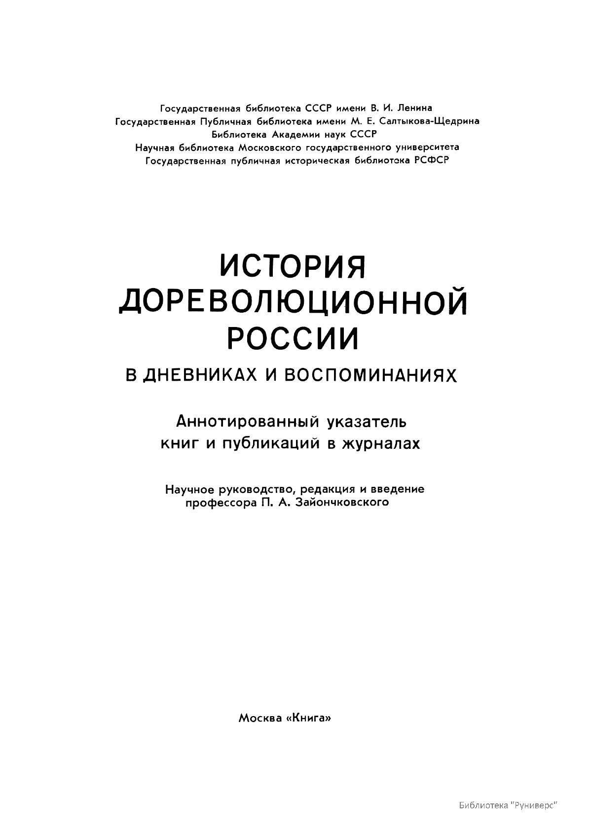 Многотомное издание этого уникального библиографического исследования, ставшего итогом многолетней работы большого коллектива ведущих отечественных источниковедов и библиографов главных библиотек нашей страны, представляет собой крупнейшее собрание аннотированной мемуарной литературы по истории России. Ведущую роль в создании этого фундаментального издания сыграл крупный отечественный ученый-историк П.А. Зайончковский, под редакцией и неусыпным контролем которого разрабатывался и выходил представленный многотомник (последние 5 книг вышли после кончины этого замечательного учёного-энциклопедиста).