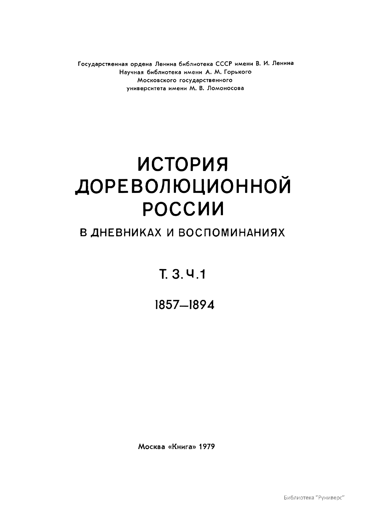 История дореволюционной России в дневниках и воспоминаниях. Т. 3. Ч. 1. 1857-1894