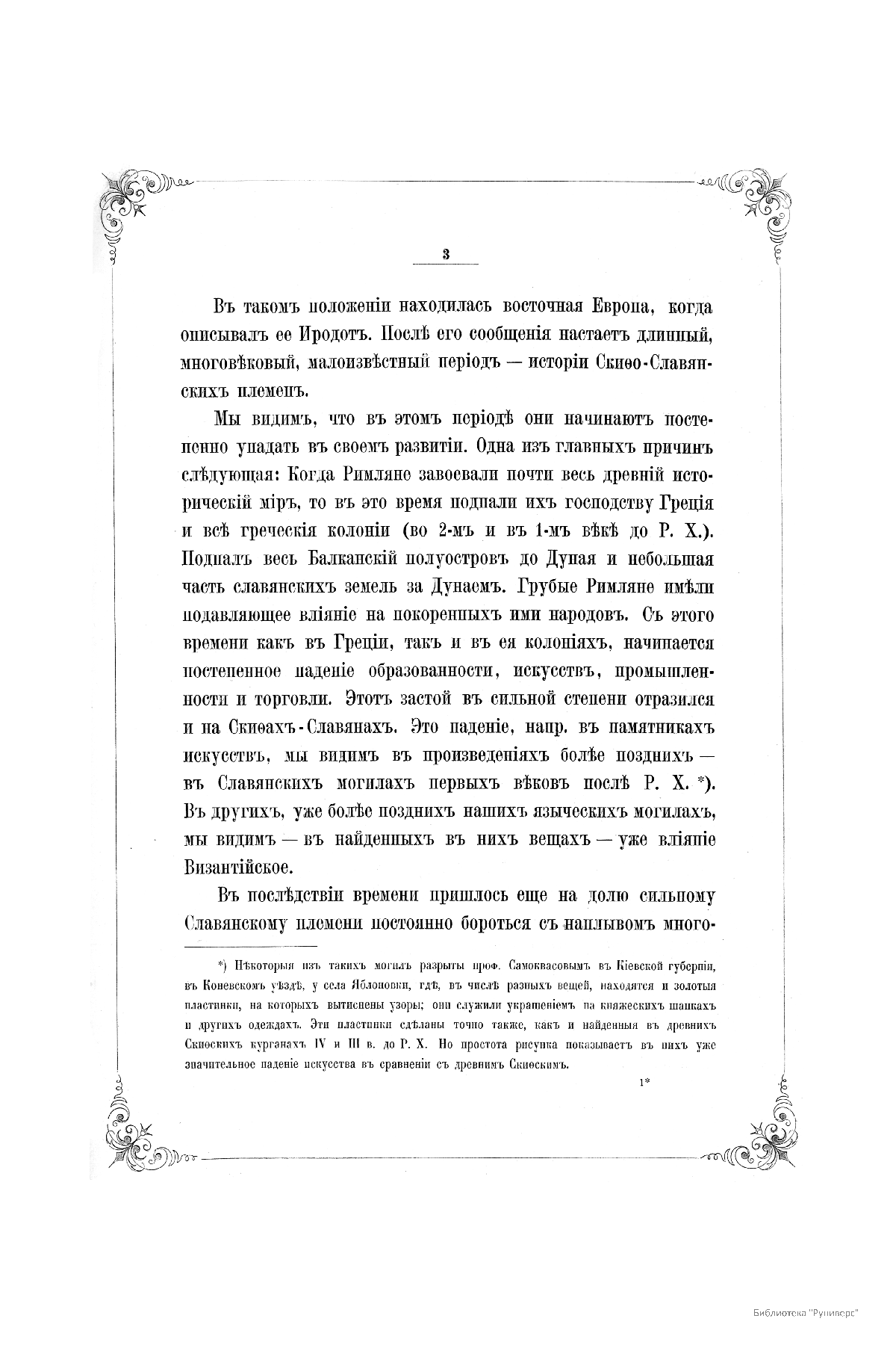 Первый том «Материалов…» издан археологом В. А. Прохоровым. Автор считает, что самый верный источник, разъясняющий жизнь и обстановку древних славян, – это сохранившиеся памятники искусств. В своём исследовании он выделяет два периода: доисторический (языческий) и исторический (христианский) и рассматривает эти памятники с исторической и археологической стороны, приводя при этом многочисленные пояснительные рисунки. Первый том доведён до XII века.