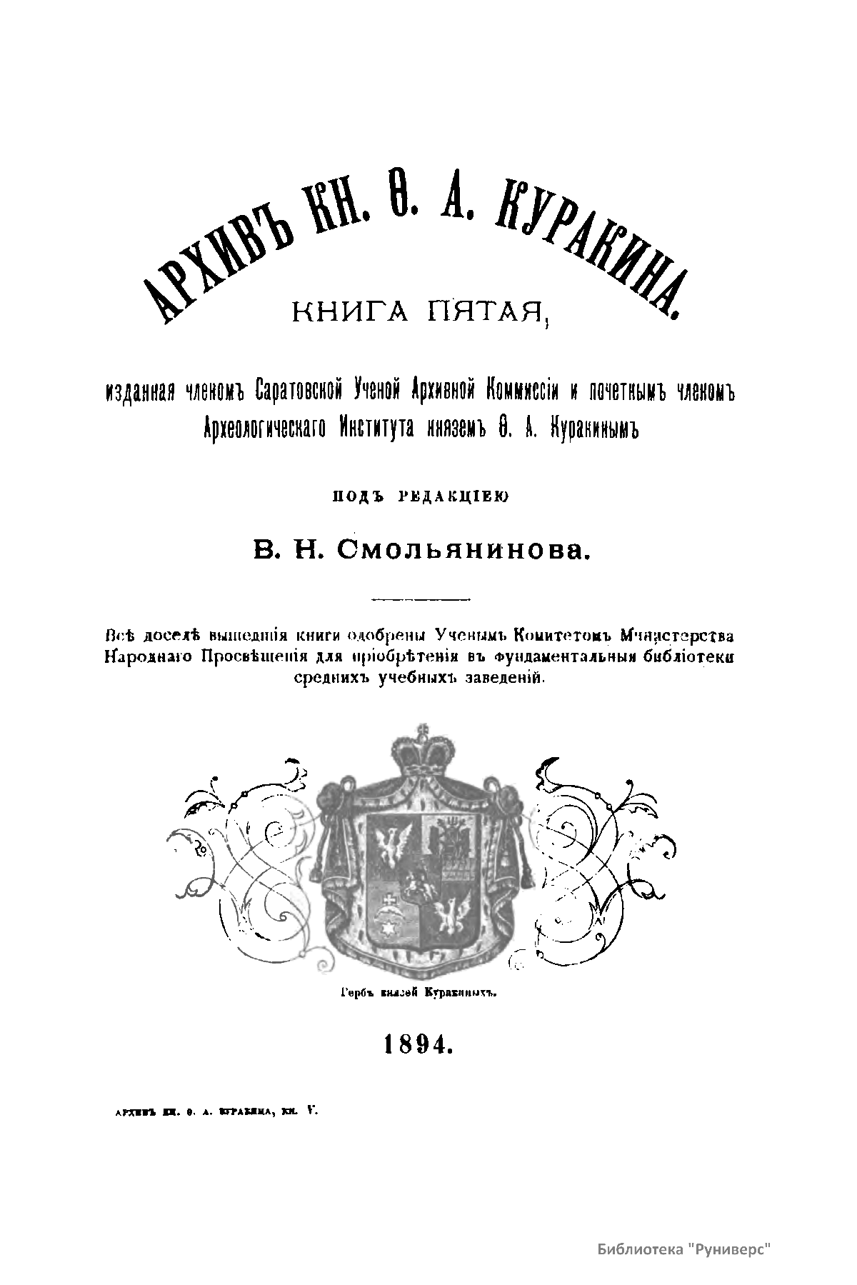 Архивъ князя Ѳ.А. Куракина. Книга пятая
