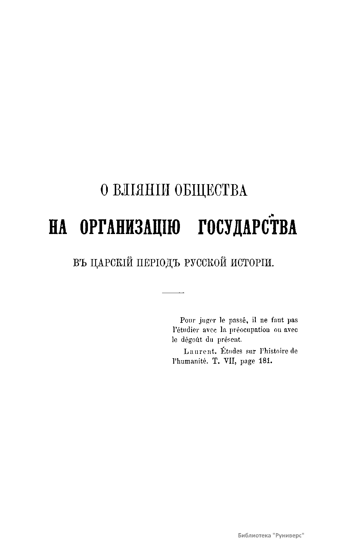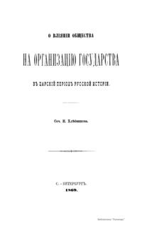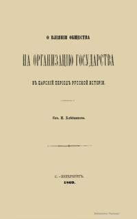 О влиянiи общества на организацiю государства въ царскiй перiодъ русской исторiи