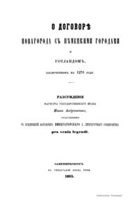 О договорѣ Новагорода съ нѣмецкими городами и Готландомъ, заключенномъ въ 1270 году