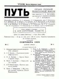 «Путь: Орган русской религиозной мысли» – журнал, издававшийся в Париже с сентября 1925 г. по март 1940 г., собравший на своих страницах все философские и богословские силы русской эмиграции. В редакционной статье «Духовные задачи русской эмиграции» («Путь», № 1. Сентябрь 1925 г.) отмечалось, что журнал ставит своей целью сохранение преемственности в процессе существования русской духовной культуры, а также стремится к преодолению сформировавшейся к тому времени эмигрантской психологии, сильно политизированной и противоречивой в своем отношении к Русской Православной Церкви и Советской России, что создавало угрозу раскола русской эмиграции.