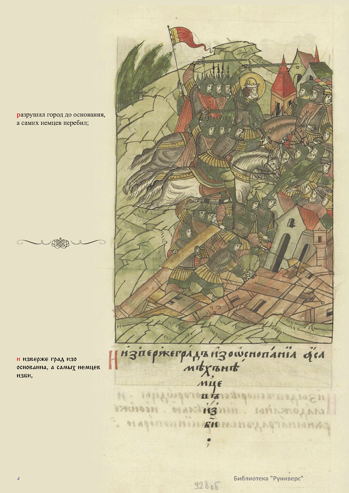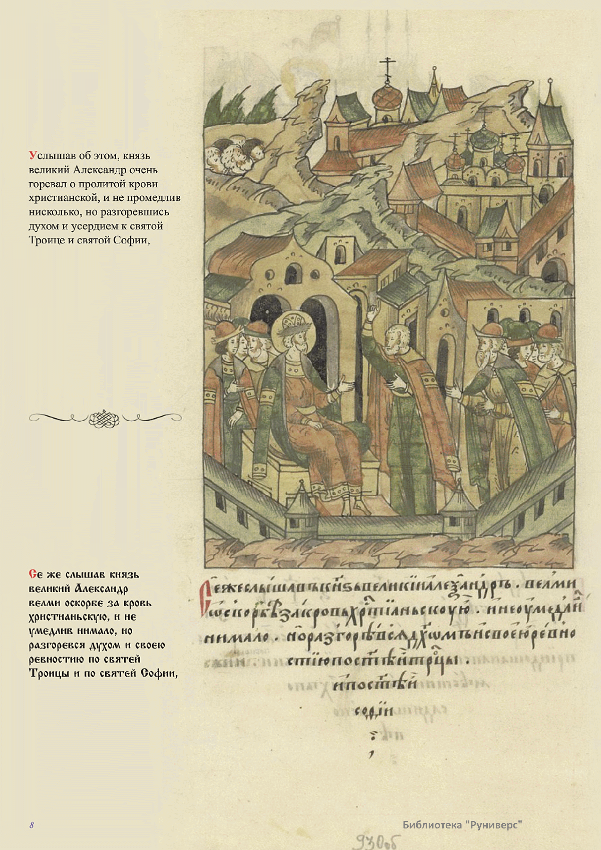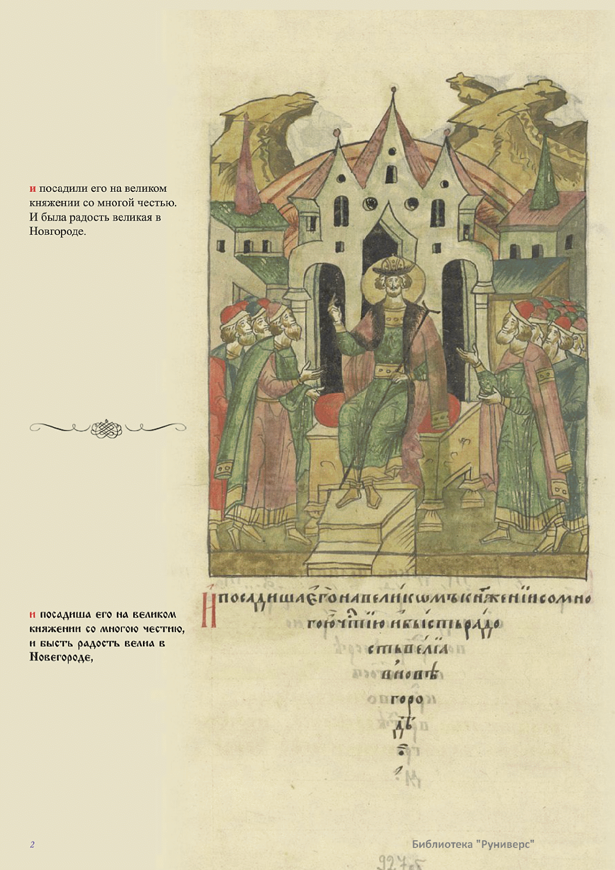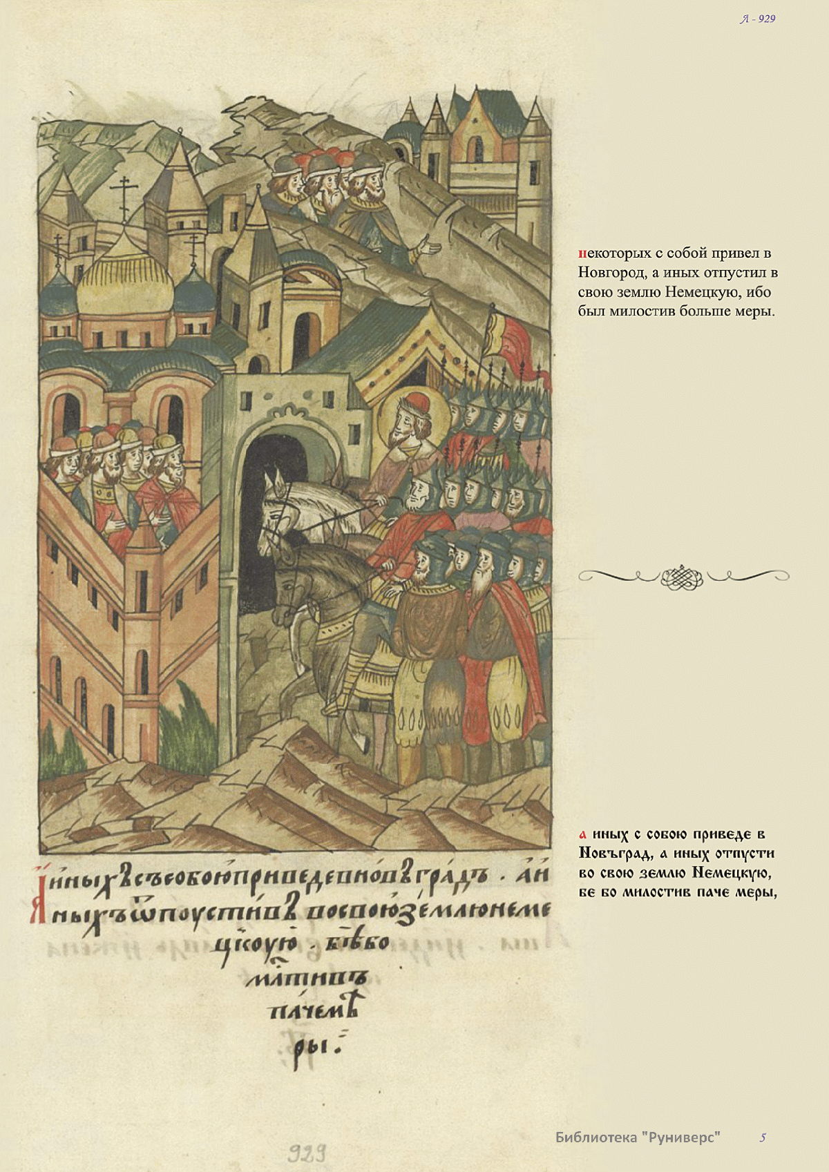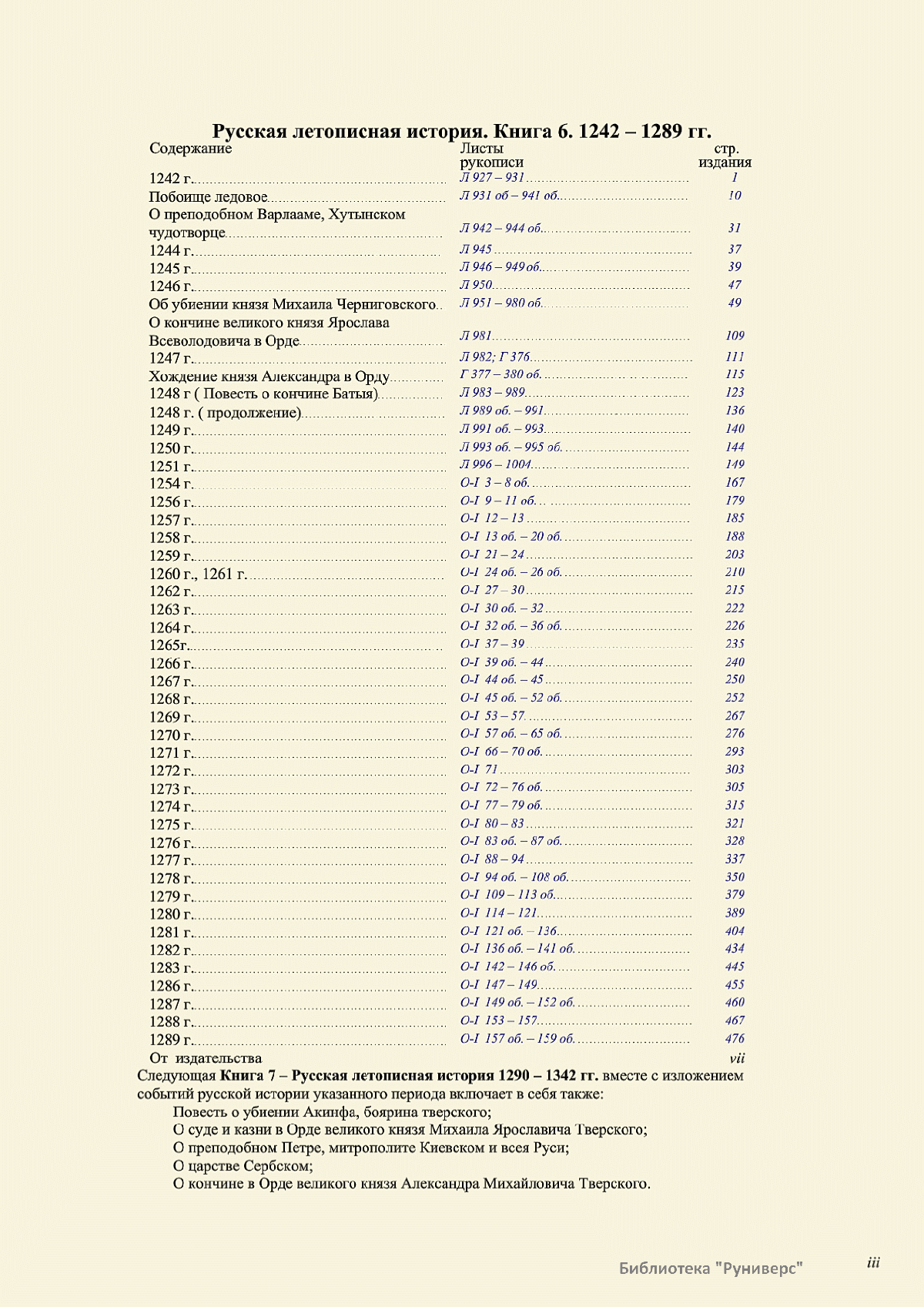 Лицевой летописный свод. XVI века — монументальный памятник древнерусского книжного искусства. На 10 тысячах листов с более чем 17 тысячами красочных миниатюр — «окон в историю» — представлена самая ранняя историческая и литературная энциклопедия. Лицевой свод дошел до наших дней в 10 томах, находящихся в разных древлехранилищах: БАН к РНБ в Санкт-Петербурге и ГИМ в Москве. Фирма «АКТЕОН» совместно с хранителями впервые осуществила научное факсимильное издание «Лицевой летописный свод XVI века». Предлагаемое издание с переводом — как дополнение в рамках научного аппарата вышеназванного факсимиле - представлено тремя разделами: библейская история, всемирная история, русская летописная история. В настоящем издании листы расположены в хронологическом порядке повествования На внешнем поле размещены транслитерация и перевод на современный русский язык. Русская летописная история 1114—1567 гг. — отражена на 6010 Лицевого летописного свода XVI века в следующих его томах: Г — Голицынский том (Отдел рукописей Российский национальной библиотеки, F.IV.225), Л — Лаптевский TOM (Отдел рукописей Российской национальной библиотеки, F.IV.233), O-I — Остермановский первый том (Отдел рукописей Библиотеки Академии наук, 31. 7. 30-1), O-II — Остермановский второй той (Отдел рукописей Библиотеки Академии наук, 31, 7. 30-2), Ш — Шумиловский том (Отдел рукописей Российской национальной библиотеки, F, IY. 232), С — Синодальный том (Отдел рукописей Государственного Исторического музея. Син. № 962), Ц— Царственная книга (Отдел рукописей Государственного Историческою музея. Син. № 149). В сносках отряжены разночтения с перепей ПСРЛ — Полным собранием русских летописей - фундаментальной для изучения истории древней и средневековой Руси книжной серией (её тексты, в основном, издавались наборно, в орфографии XIX века).