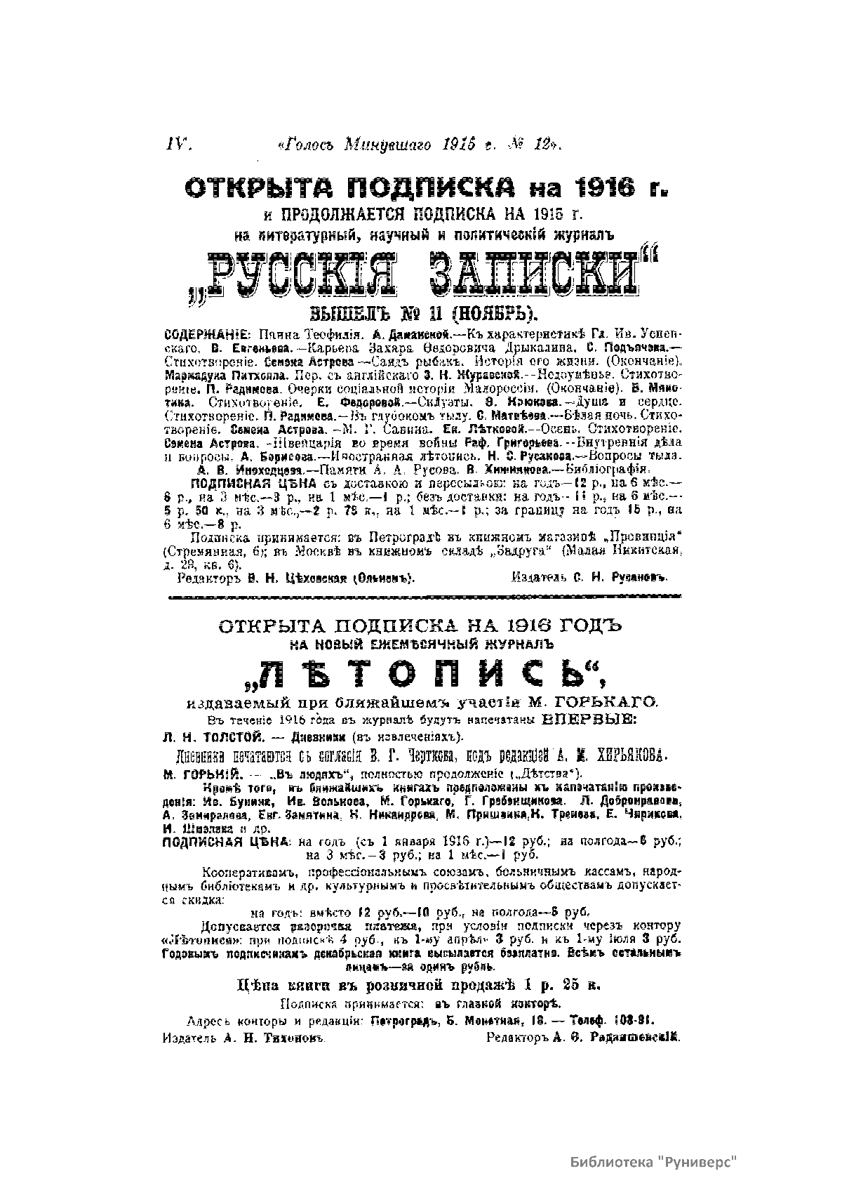 Голосъ минувшаго. 1915. 12. Декабрь