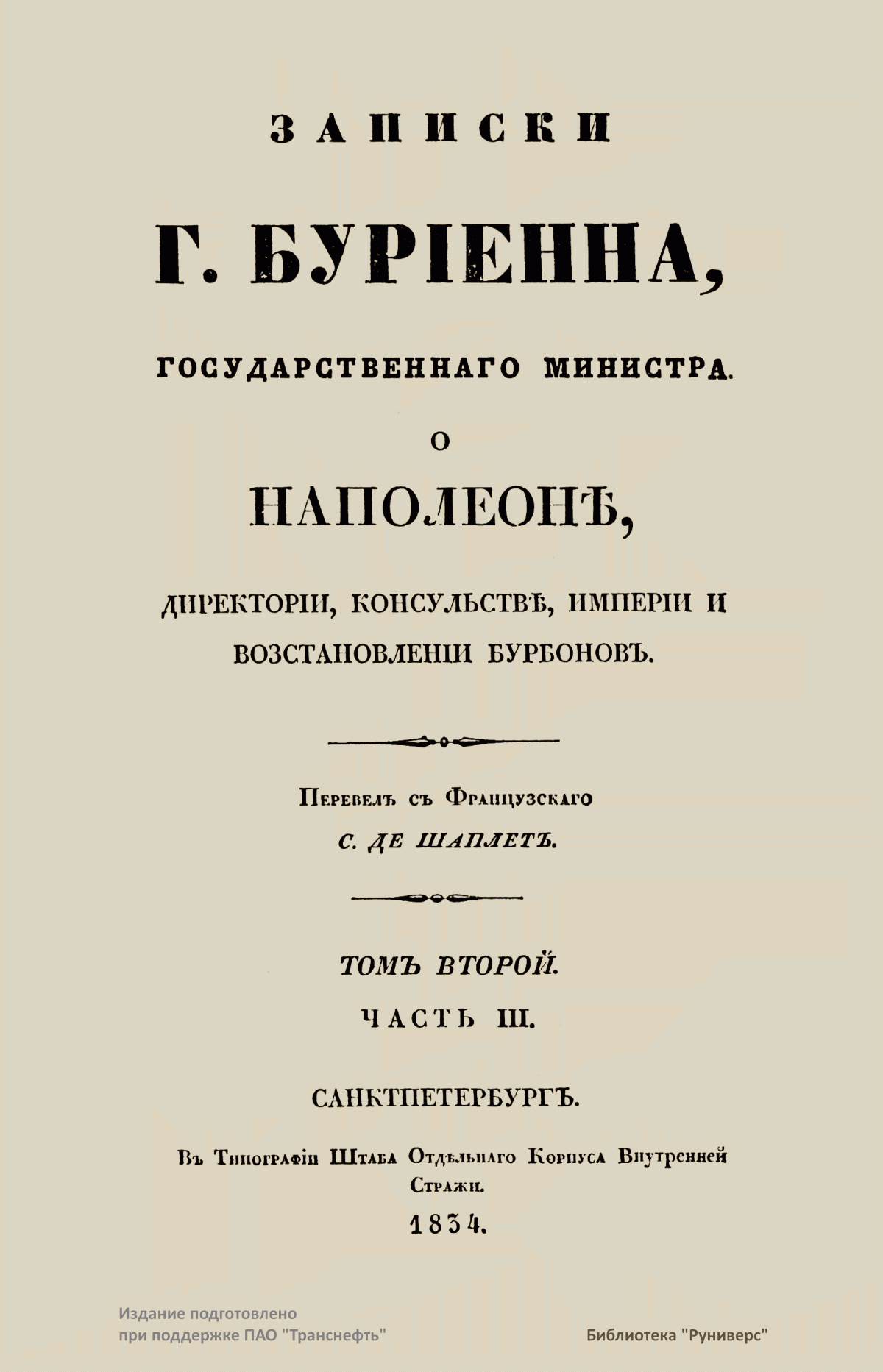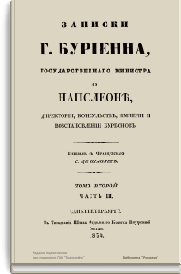Записки г. Буриенна, государственного министра о Наполеоне, директории, консульстве, Империи и восстановлении Бурбонов. Том второй