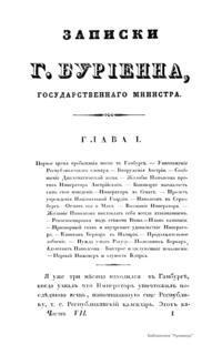 Записки Буриенна, государственного министра о Наполеоне, директории, консульстве, Империи и восстановлении Бурбонов» написаны Луи-Антуаном Буриенном (1769–1834) — французским политическим деятелем, который долгое время находился при Наполеоне, собирал информацию о нем, делал записи, имел доступ к документам. Позже, уже после смерти Бонапарта, весь накопившийся материал автор издал в форме записок. Труд его составил десять частей, объединенных в пять томов. Жанр записок был очень популярен в XIX веке. Как правило, записки написаны людьми, которые сыграли определенную роль на исторической арене, являлись свидетелями или участниками исторических событий, находились в кругу людей, играющих важные роли в истории. О Наполеоне I, как о человеке, оставившем значительный след в истории, их написано не мало.