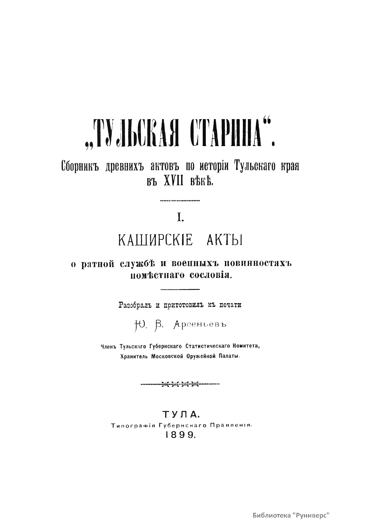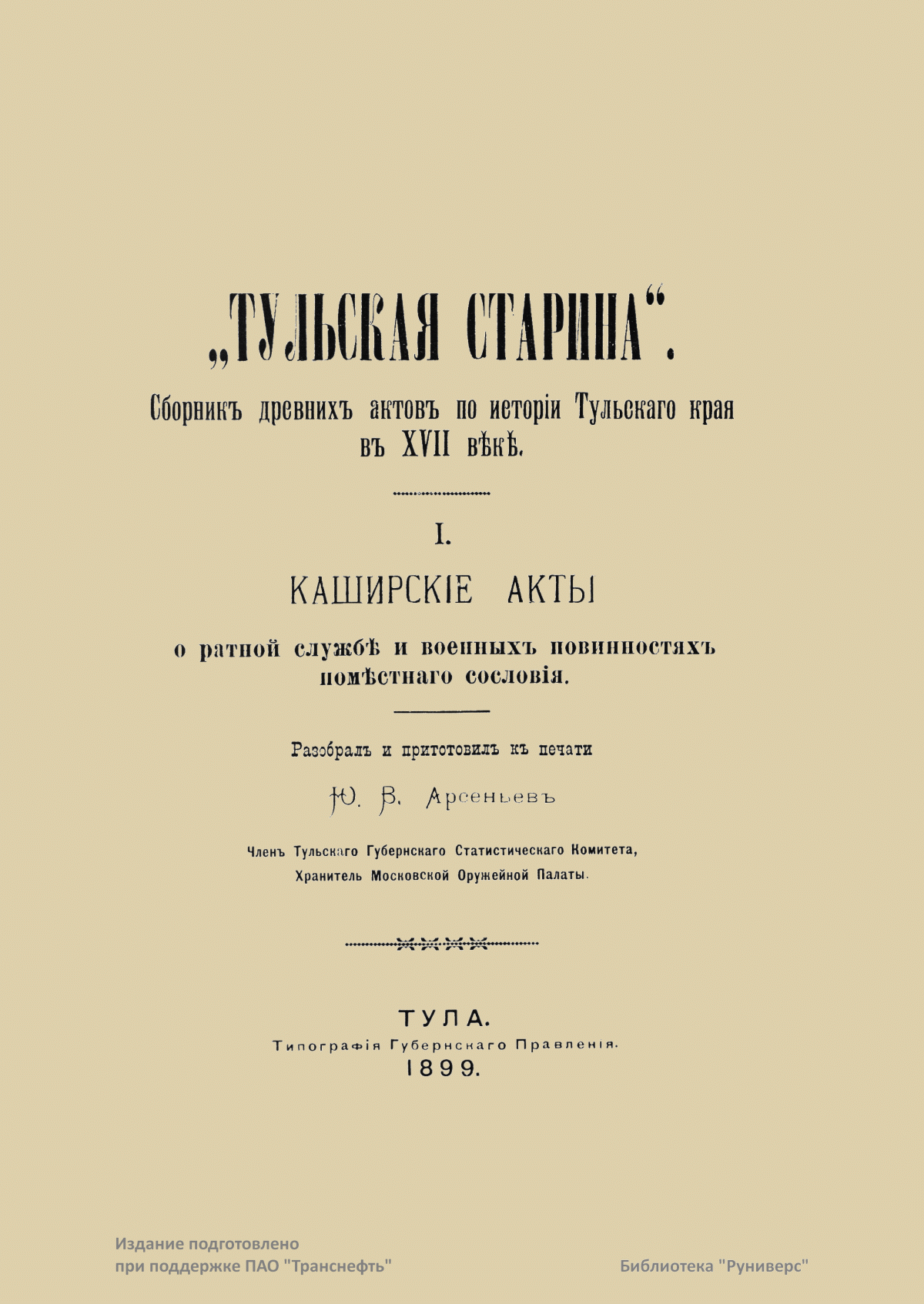 "Тульская старина". Сборникъ древнихъ актовъ по исторiи Тульскаго края въ XVII вѣкѣ
