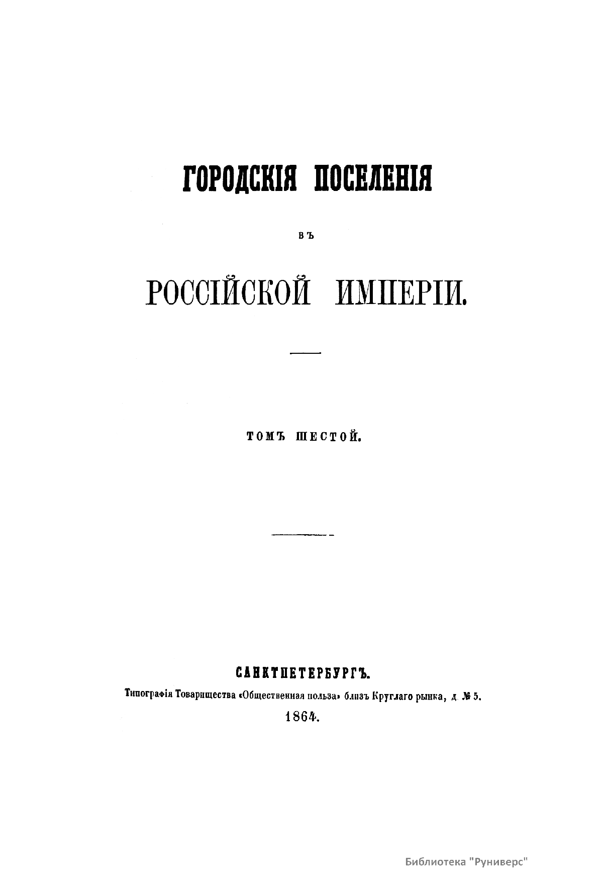 Городскiя поселенiя въ Россiйской имперiи. Томъ шестой