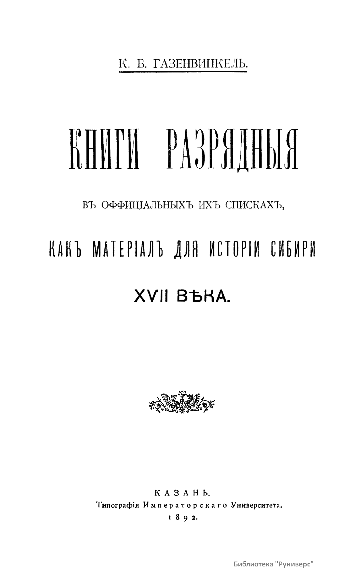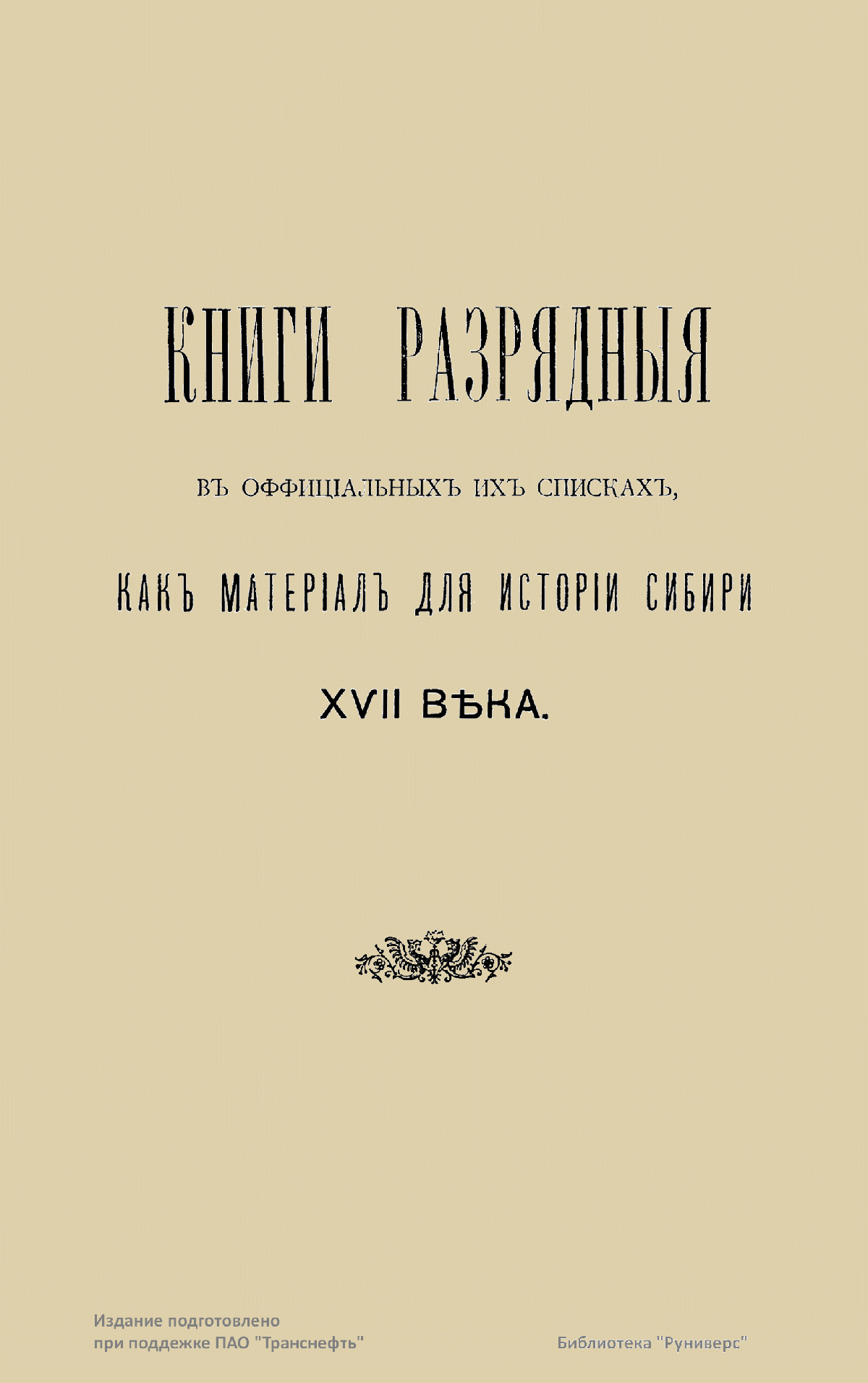 Книги разрядные в официальных их списках, как материал для истории Сибири XVII века