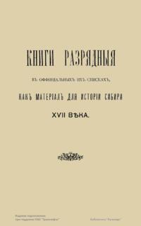 Разрядные книги — книги записей распоряжений русского правительства о ежегодных назначениях на военную, гражданскую и придворную службу в XVI–XVII вв. — имеют важнейшее значение как источник по истории государственного управления, армии, войн, внешней политики России. В данном издании юриста-этнографа, историка Сибири Константина Борисовича Газенвинкеля (1850–1896) собран материал, дающий ценные сведения о жизни Сибири XVII в. Разрядные книги дают полное представление о численности вооруженных сил, которыми располагало московское правительство в Сибири, личном составе воевод и других высших должностных лиц, о распределении вооруженных сил по сибирским городам и острогам и др.