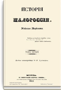 Первые два тома содержат основной текст — от древних времен до 1793 г., а 3–5 тома — документальные дополнения, примечания, хронологические таблицы, источники, указатели. Основным источником для книги послужила «История русов» (произведение, написанное в виде политического памфлета в конце XVIII–начале XIX века на территории Малороссии) почти не подкрепленная другими документальными свидетельствами. Тем не менее, книга имела большое влияние на современников Н. А. Маркевича, внесла свой вклад в украинскую историографию XIX века, а документальные приложения сохраняют свою историческую значимость и сегодня.