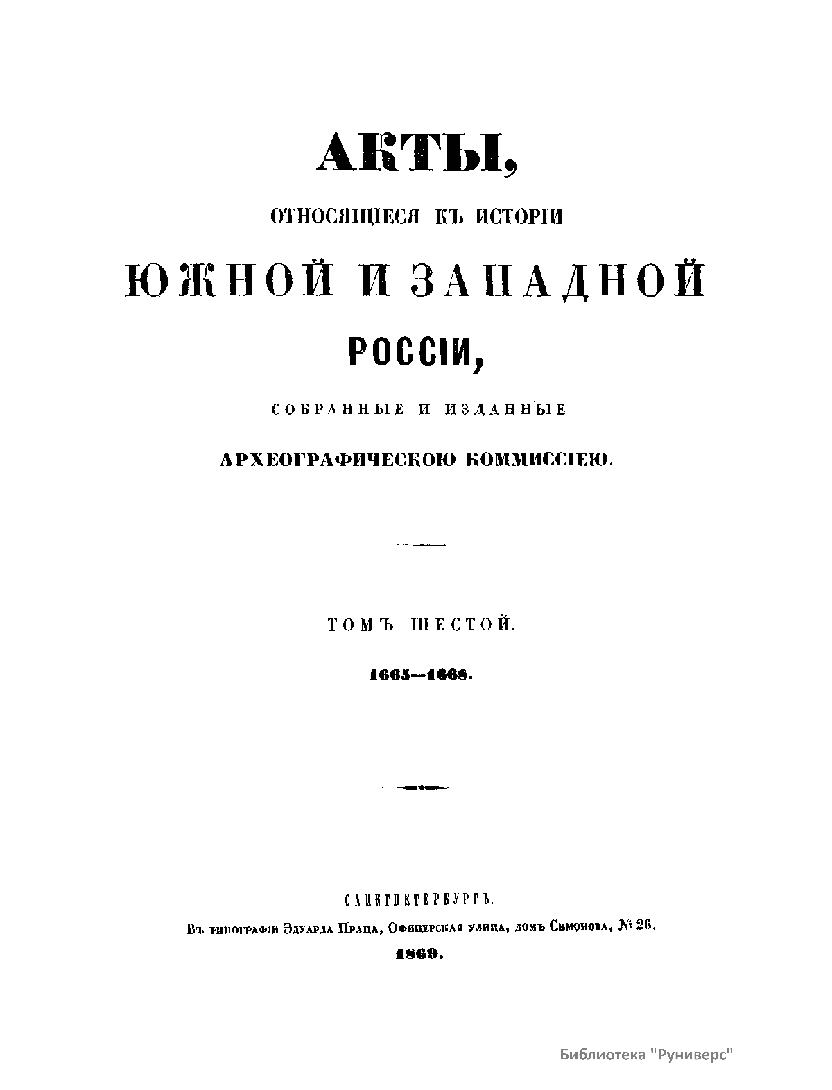 Акты, относящiеся къ исторiи южной и западной Россiи. Томъ шестой. 1665-1668
