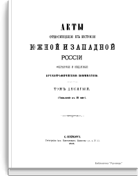 Акты, относящиеся к истории южной и западной России. Том десятый (дополнение к III тому)